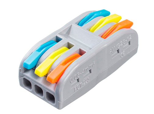 Соединитель электрический, клеммный, PCT-223, на три линии, проходной, быстрозажимной, GS