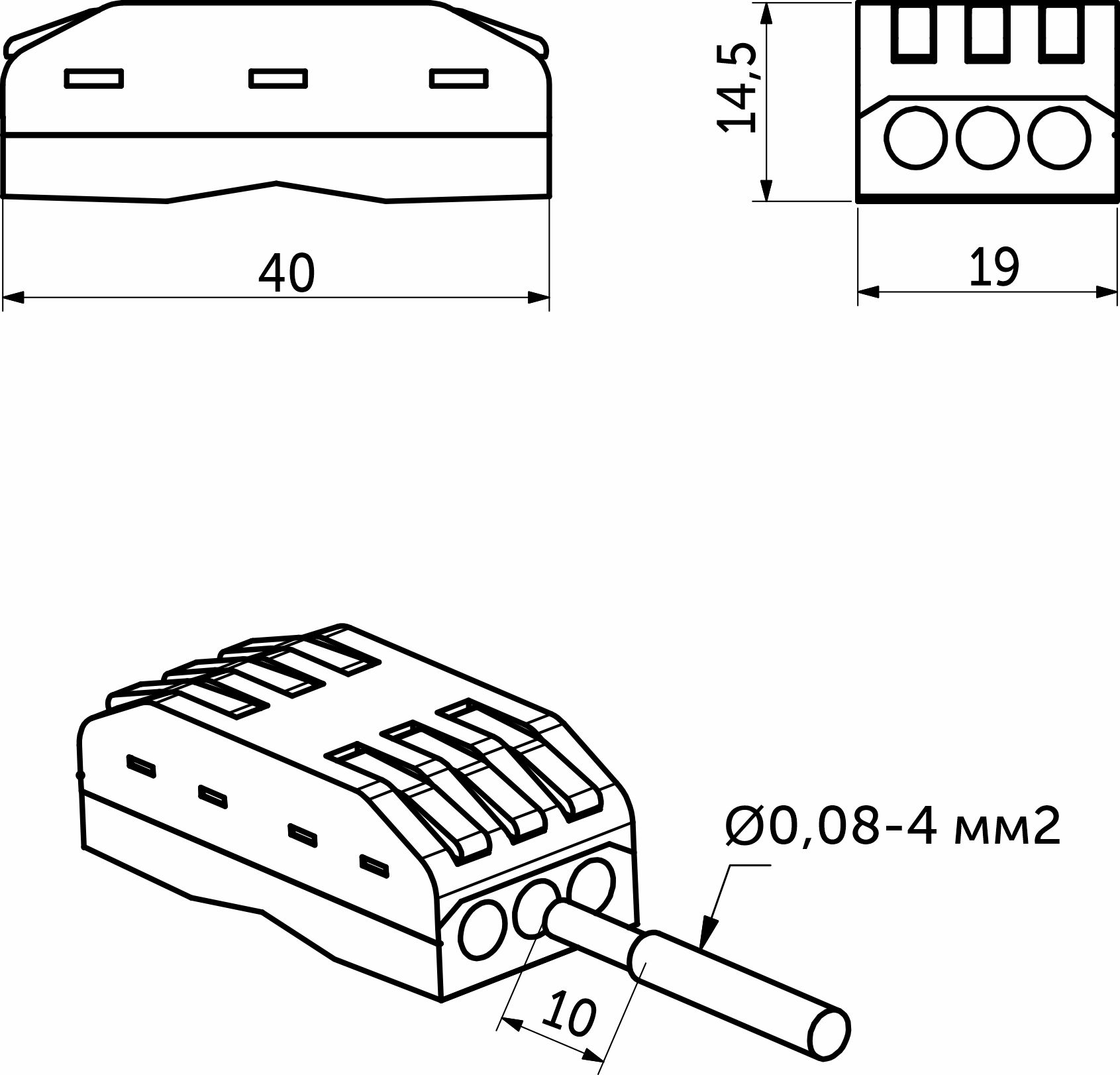 Соединитель клеммный K313, быстрозажимной, проходной, 0,75-4 мм2, 32 А, 250 В, для любого типа провода.