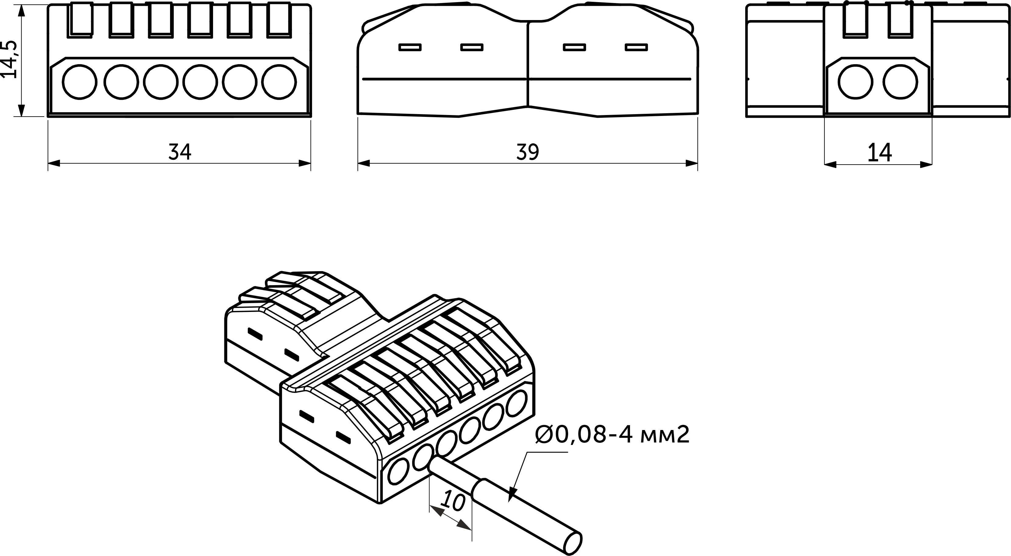 Соединитель электрический, клеммный, PCT-422, на две/четыре линии, проходной, быстрозажимной, GS