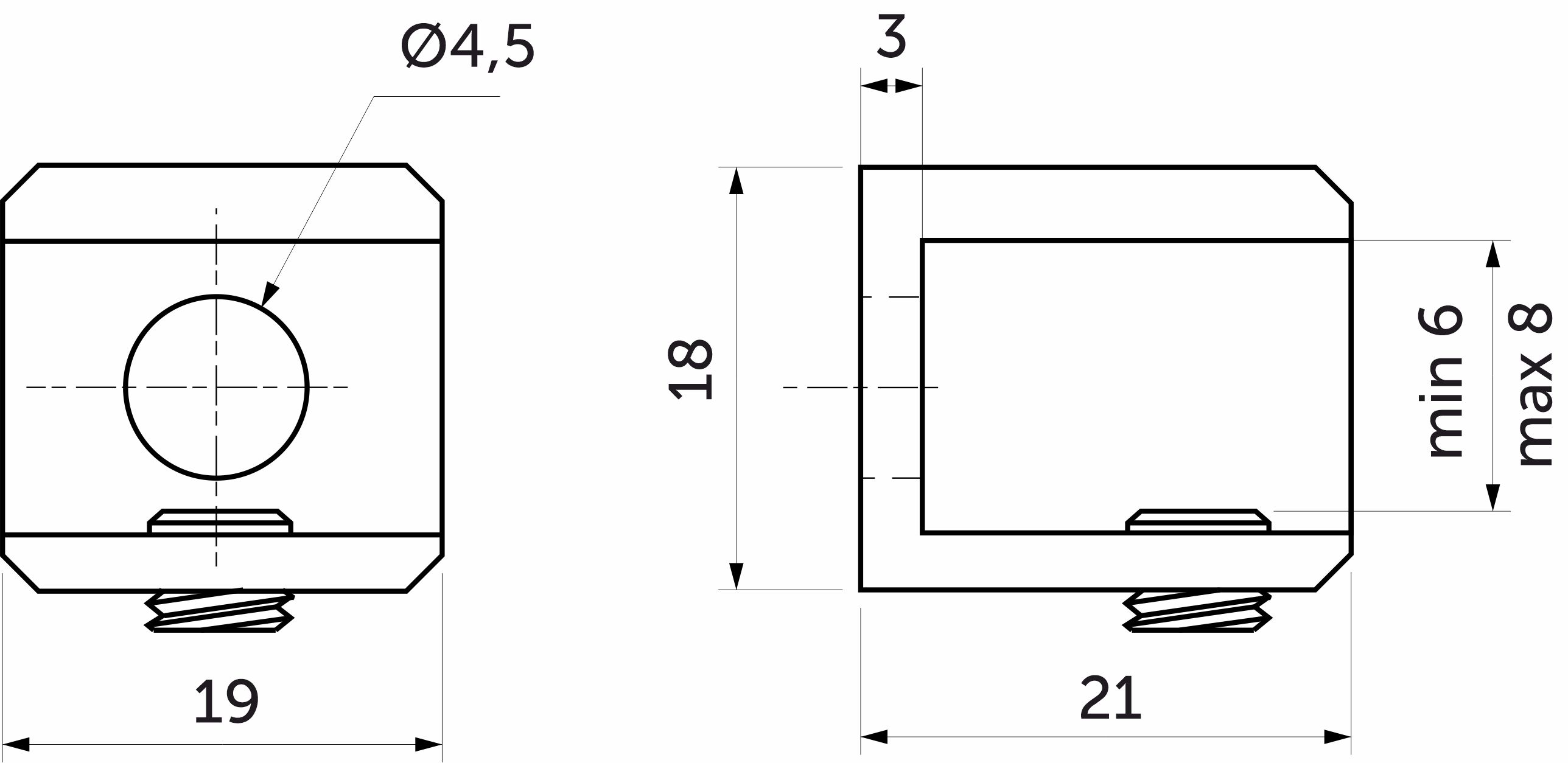 Полкодержатель для стекла регулируемый используется для монтажа стеклянных полок толщиной 6-8 мм.