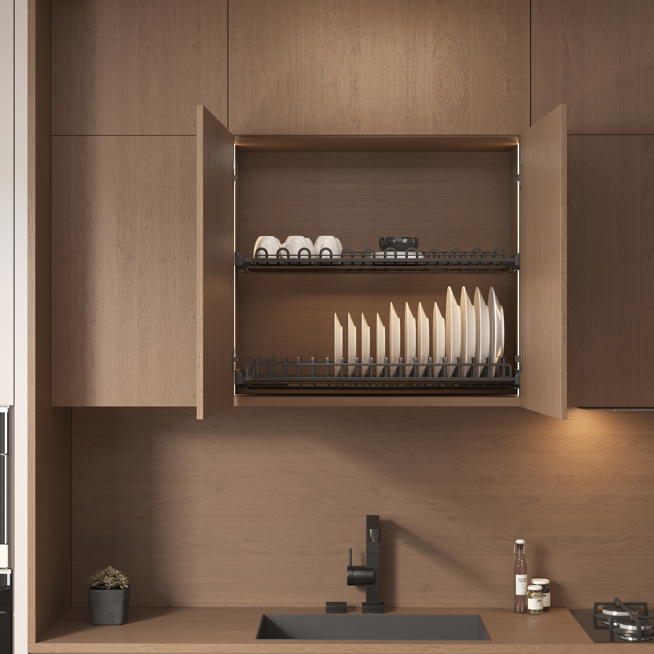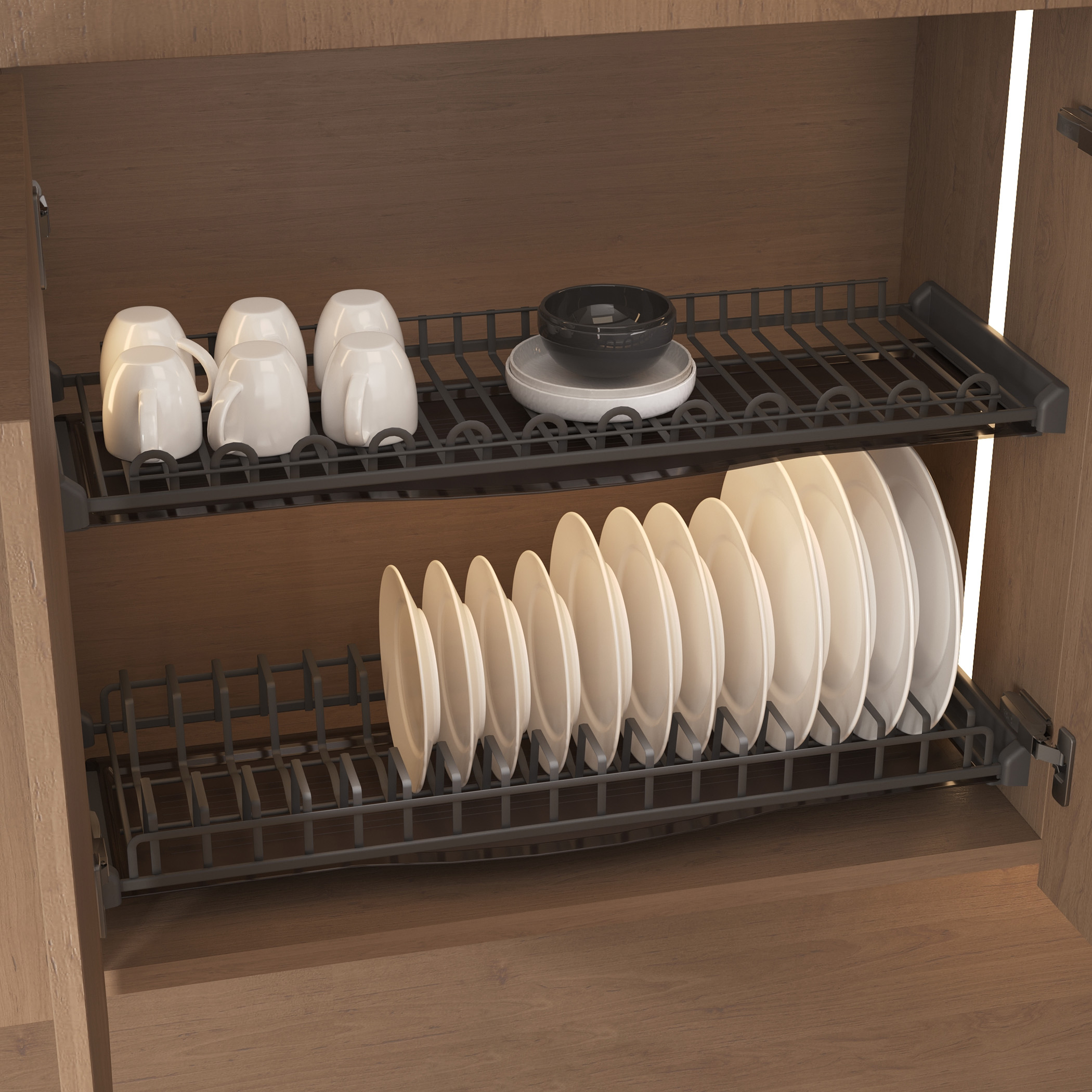 Продуманная конструкция сушки идеально подходит как для хранения классической, так и современной толстостенной посуды.