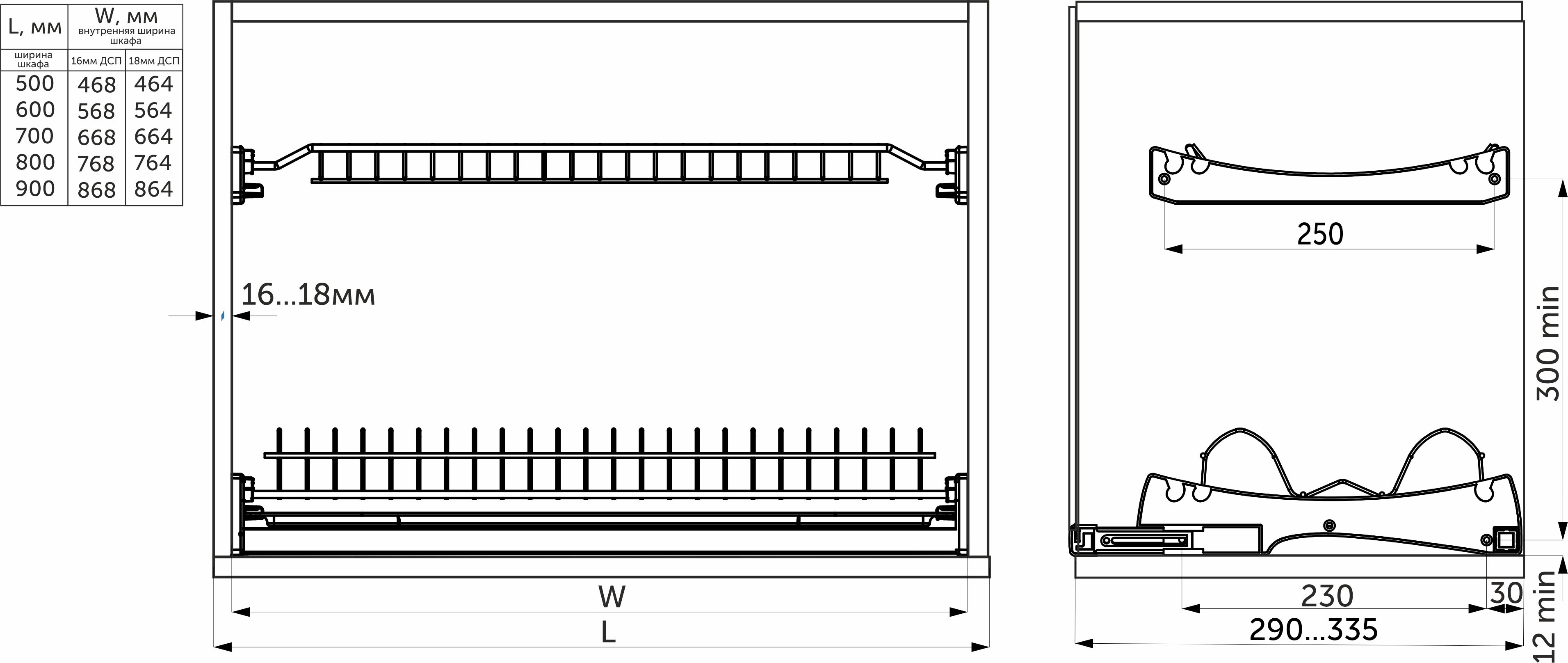 - подходит для установки в ящик как с ДСП 18 мм, так и с ДСП 16 мм.