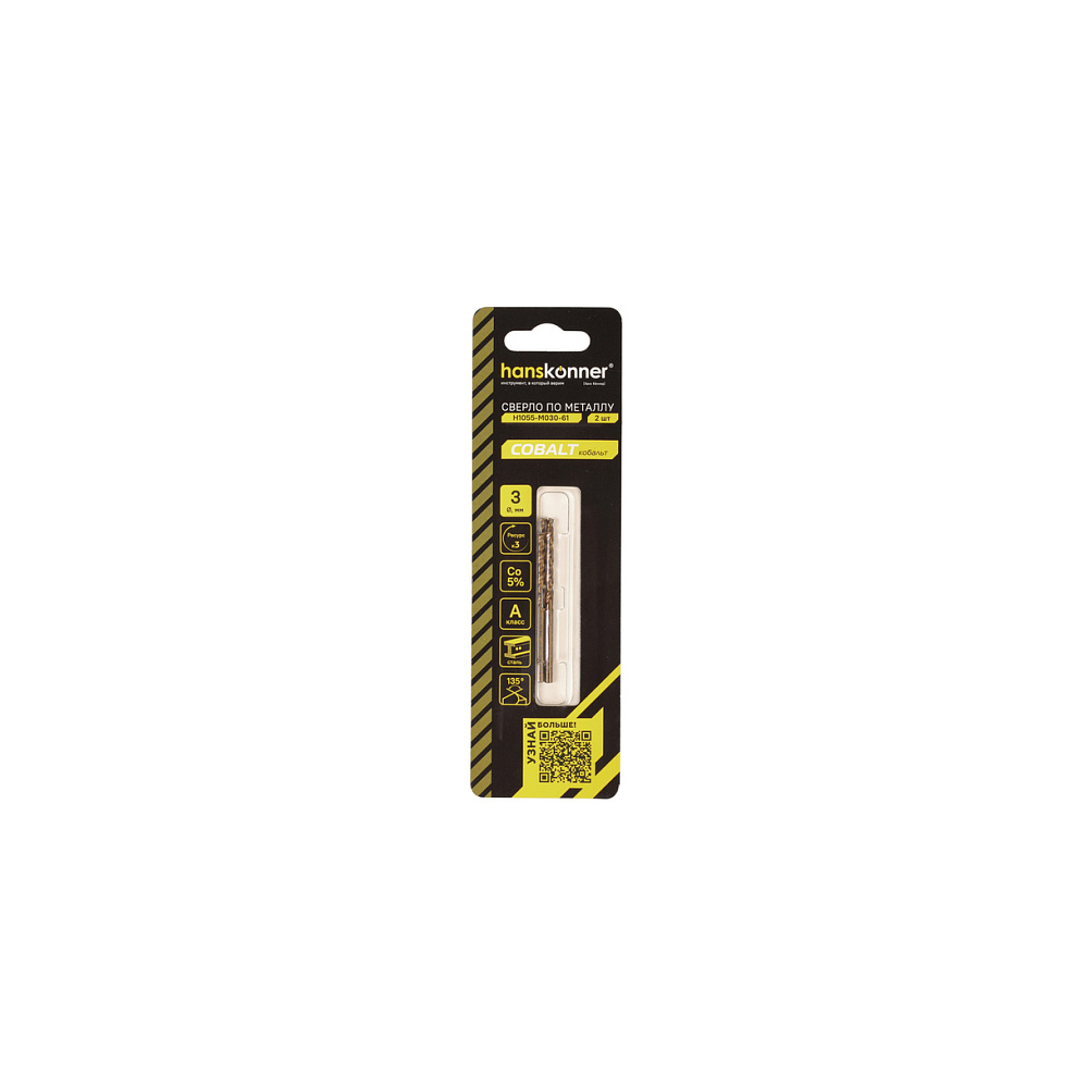 Сверло по металлу цилиндрический хвостовик 3.0х61 мм, сталь Р6М5К5 Кобальт Hanskonner (упак. = 2 шт.)