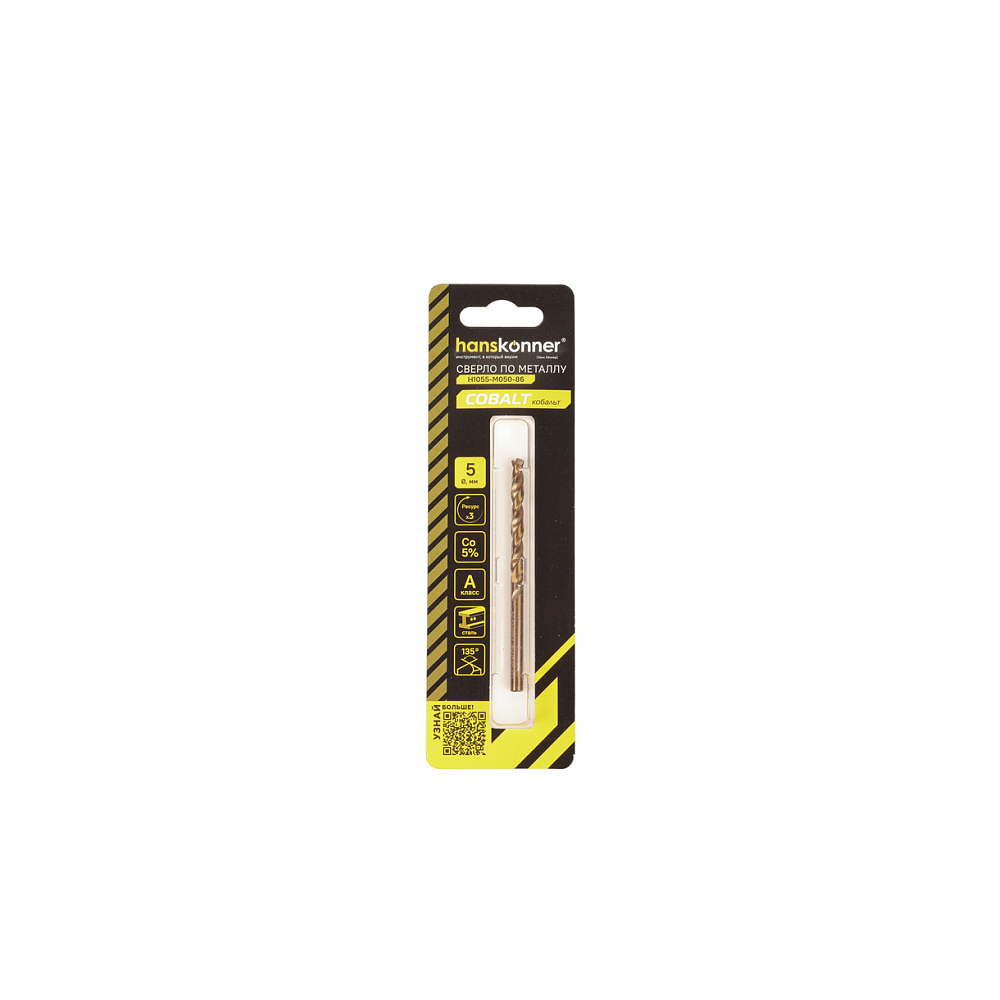 Сверло по металлу цилиндрический хвостовик 5.0х86 мм, сталь Р6М5К5 Кобальт Hanskonner