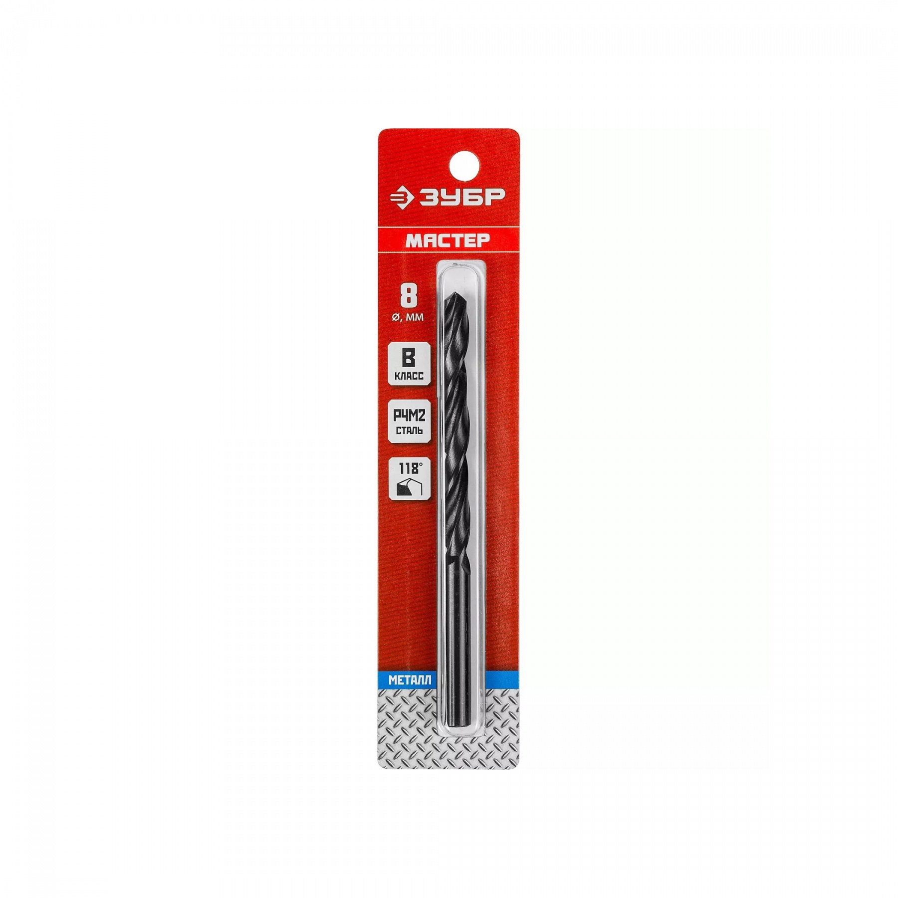 Сверло по металлу цилиндрический хвостовик 8.0 х 117 мм, сталь Р4М2 МС ЗУБР