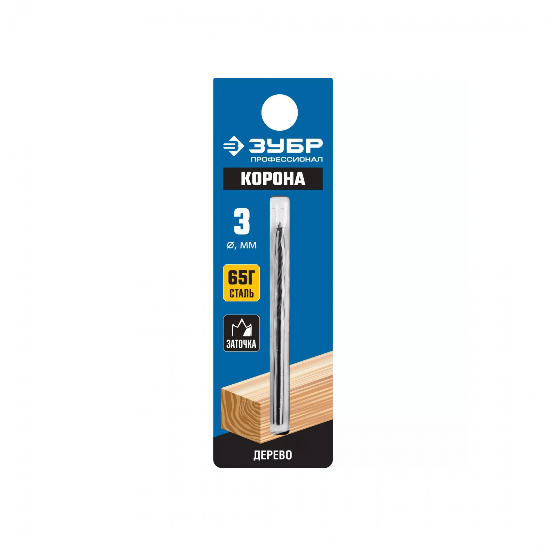 Сверло спиральное по дереву, цилиндрический хвостовик 3,0*60 мм, сталь 65Г ПС ЗУБР