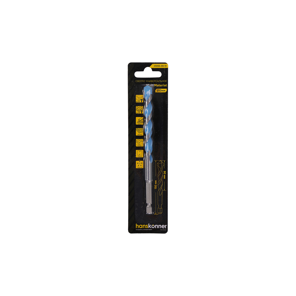 Сверло универсальное шестигранный хвостовик 10,0 мм, твердосплавная напайка Hanskonner
