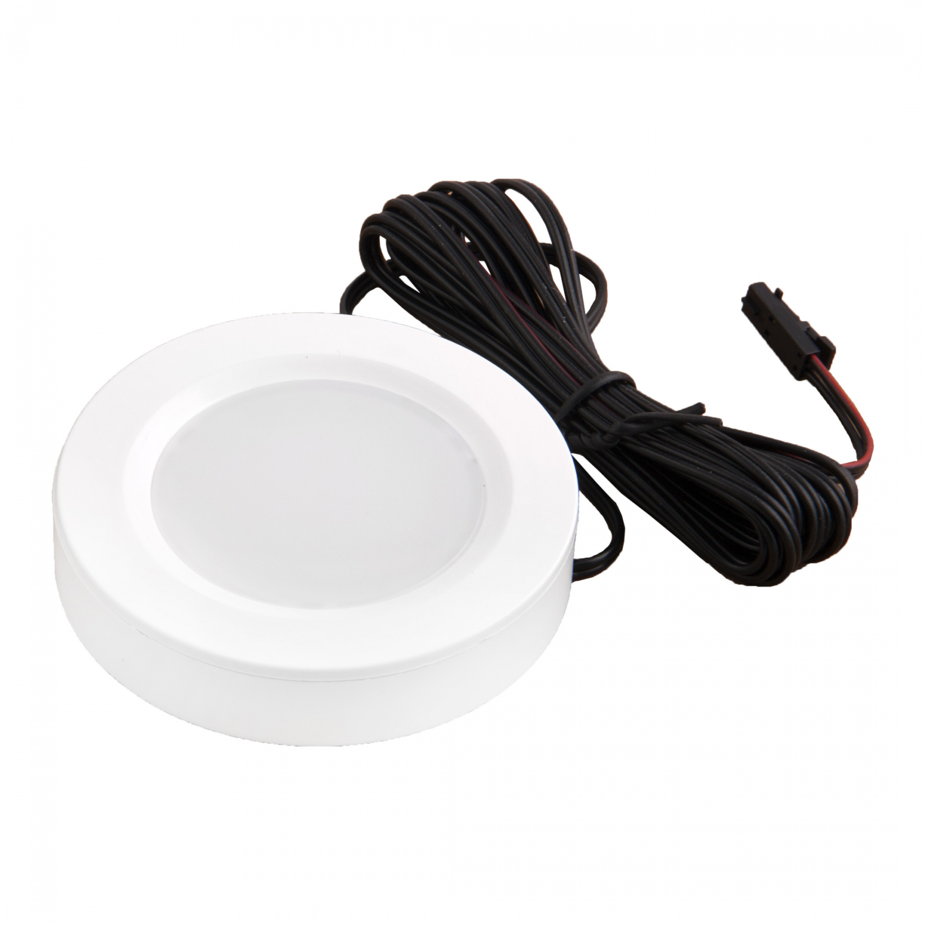 Длина мини-коннектора 2 м. Световой поток 180 Lm. Цвет рассеивателя матовый. Диаметр отверстия под светильник 60 мм. Врезной 60 х 10,5 мм. Накладной 70 х 14,6 мм. Применяется в кухонной подсветке и подсветке полок и шкафов.