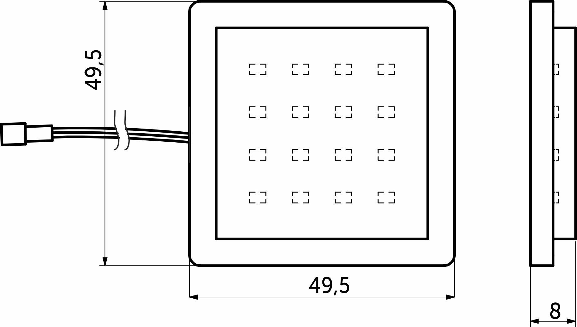 Светильник светодиодный, накладной, БЕЗ РАМКИ!!! Рамки 91301, 91303, 91304, 91302, размеры 52х52x8мм, напряжение 12V постоянного тока, мощность 2W, степень защиты IP20, нейтральный белый 4000К и холодный белый 6000К, шнур с коннектором 1.5м