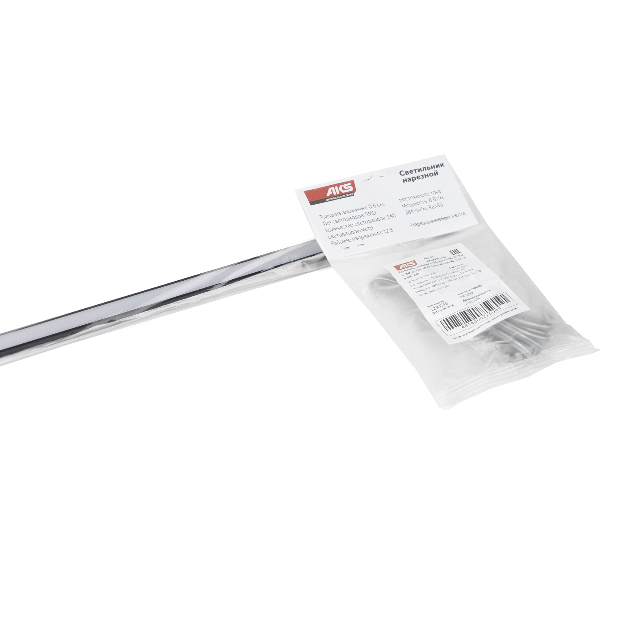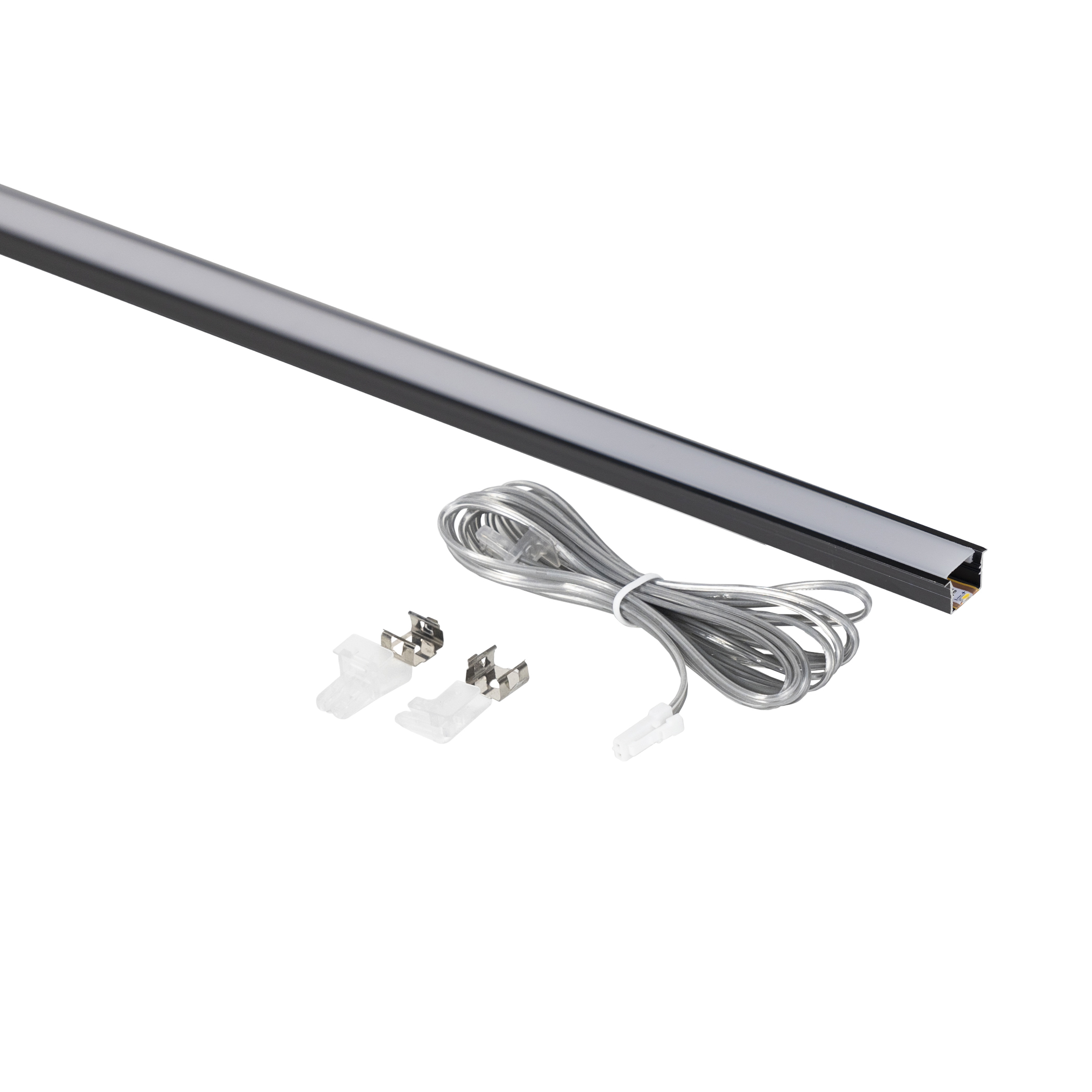 Светильник светодиодный, нарезной, 10*10мм, 8W/m, 12V, 4000K (нейтральный белый), 1.5м, черный, (в комплекте шнур, 2 заглушки, 2 держателя), AKS