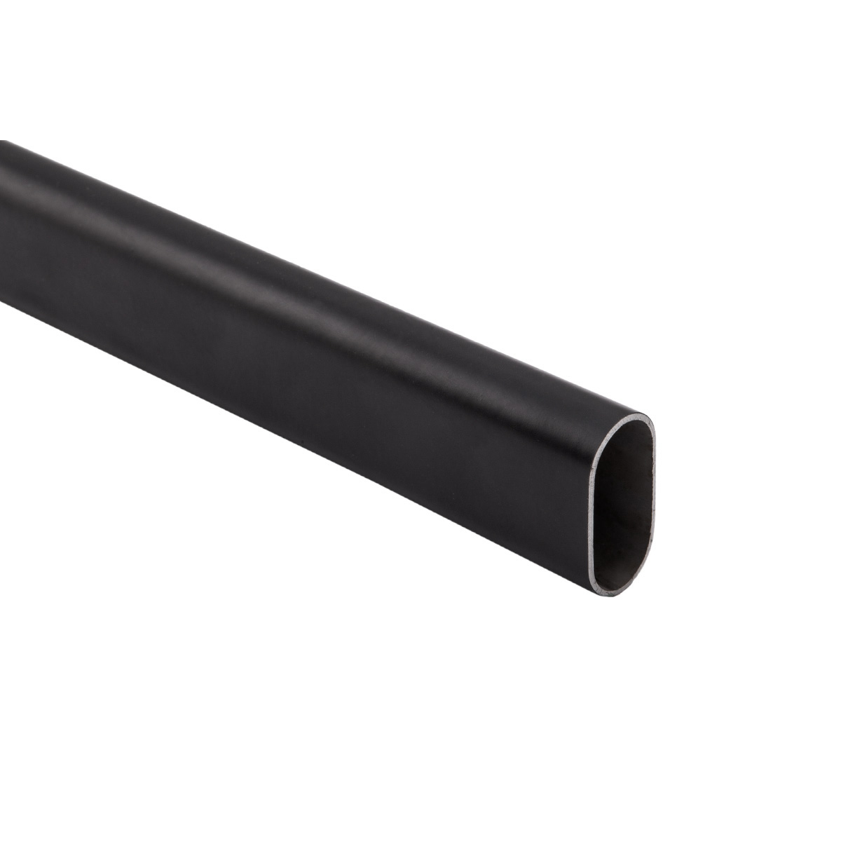 Труба изготовлена из холоднокатанной стали. Покрытие - порошковая краска, цвет - черный матовый. Предназначена для использования в качестве гардеробной штанги.