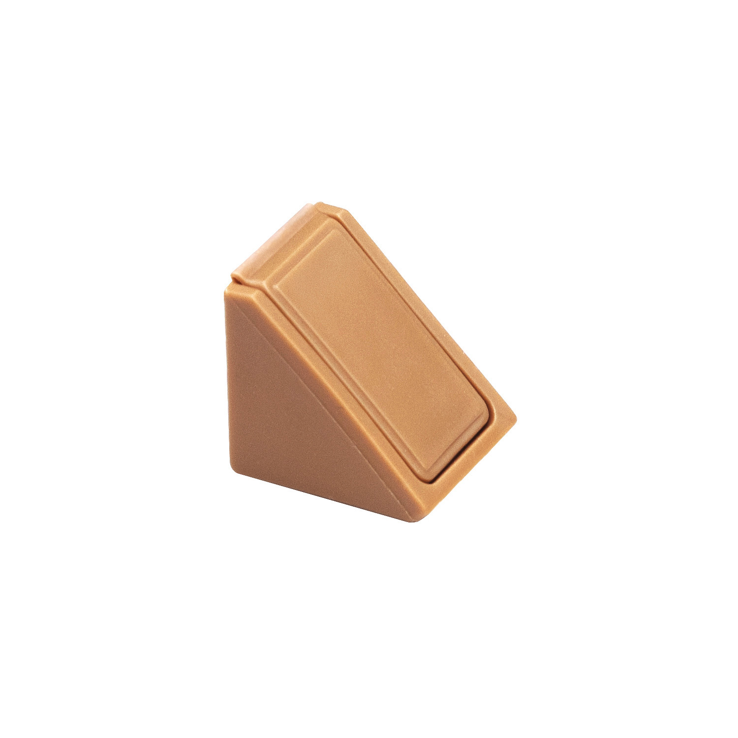 Один из видов одинарных пластиковых уголков (командорок), который имеет прикрепленную крышку. Данный уголок представлен в нескольких цветах, чтобы можно было подобрать к определенному цвету ДСП, и имеет треугольную форму. Данный вид соединения менее прочен, чем металлические уголки, но данные недостатки компенсируются низкой ценой и разнообразием цветов.