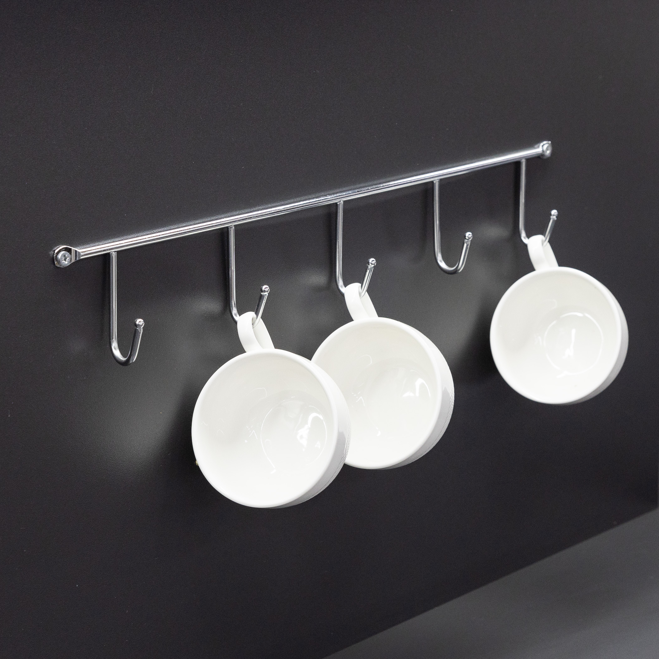 Вешалка металлическая с 5 крючками. В комплект входит дюбеля и саморезы для крепления