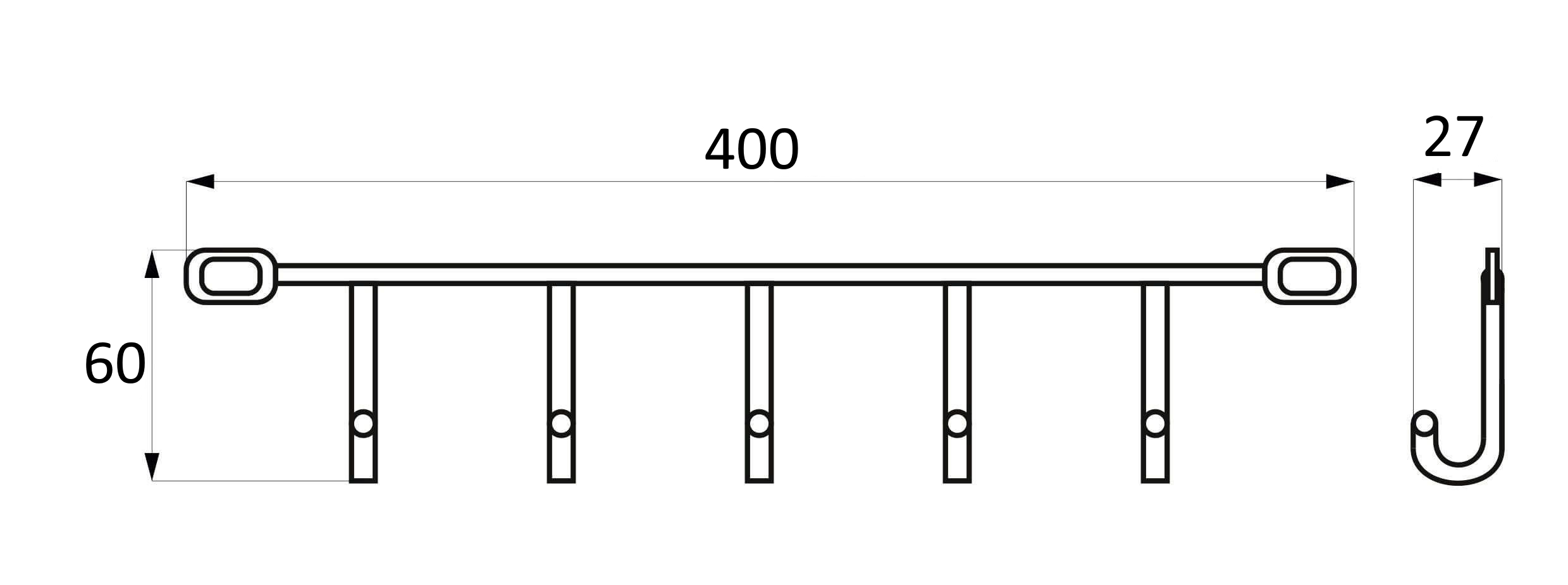 Вешалка настенная на 5 крючков 400*60*40, хром AKS