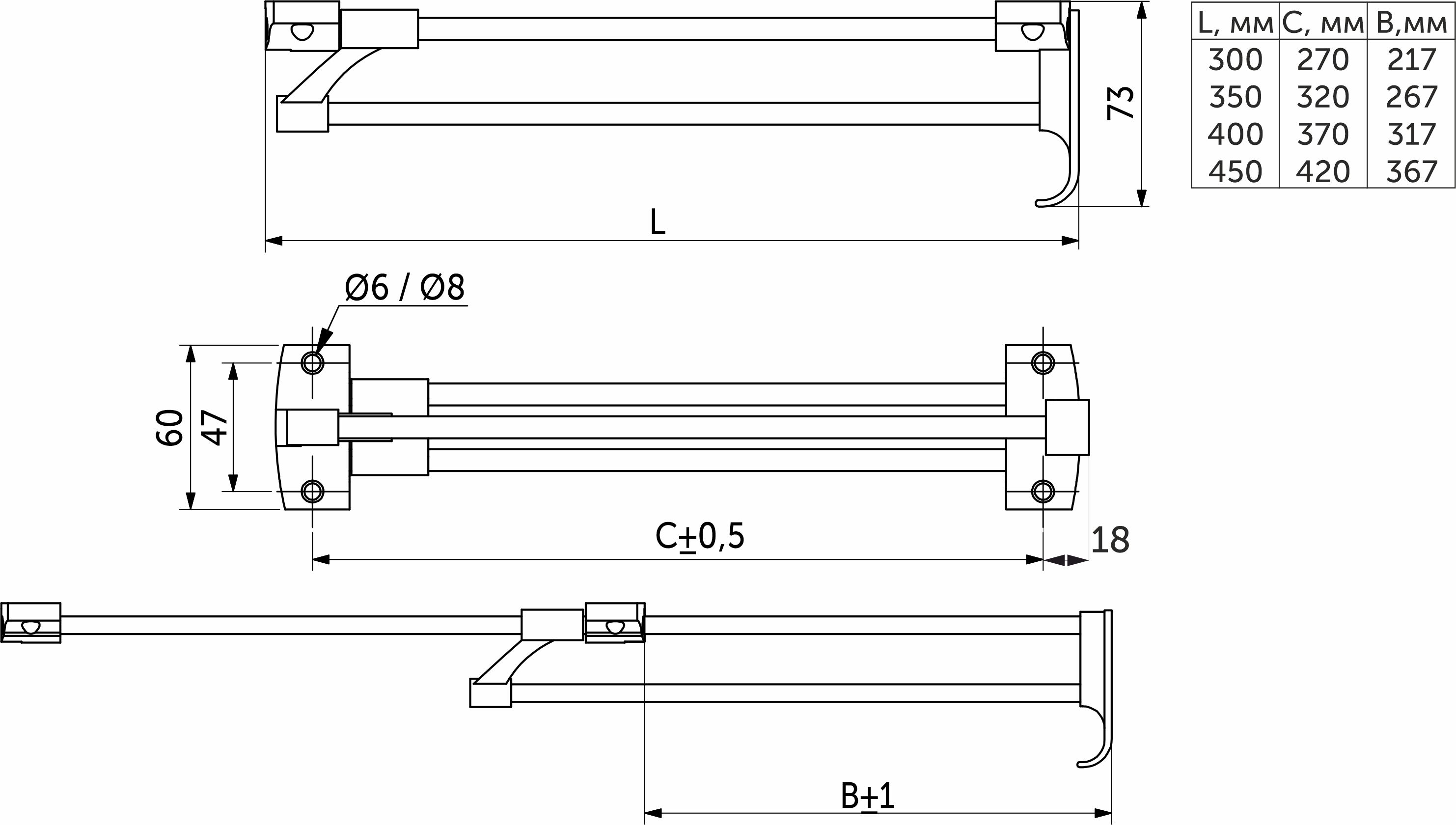Выдвижная вешалка L-300 усиленная с ручкой, хром/черный AKS