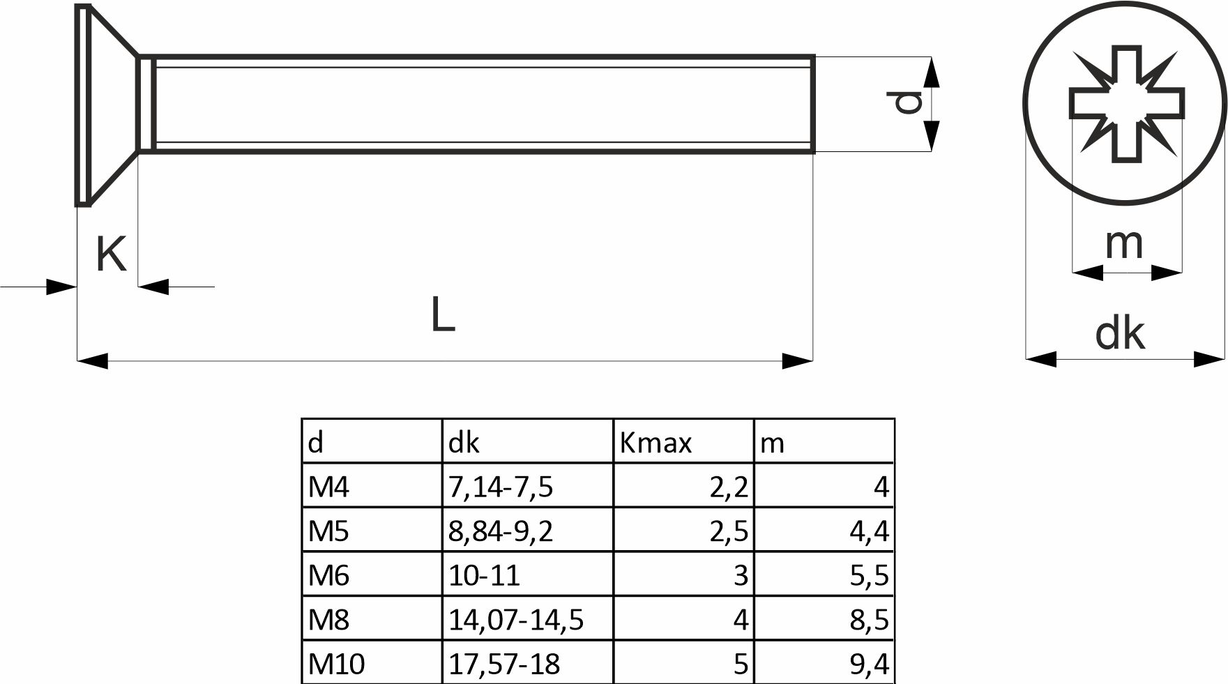 Винт потай М6*45, крестообразный шлиц DIN 965, полн. резьба (уп/10 кг/ ~1200) AKS