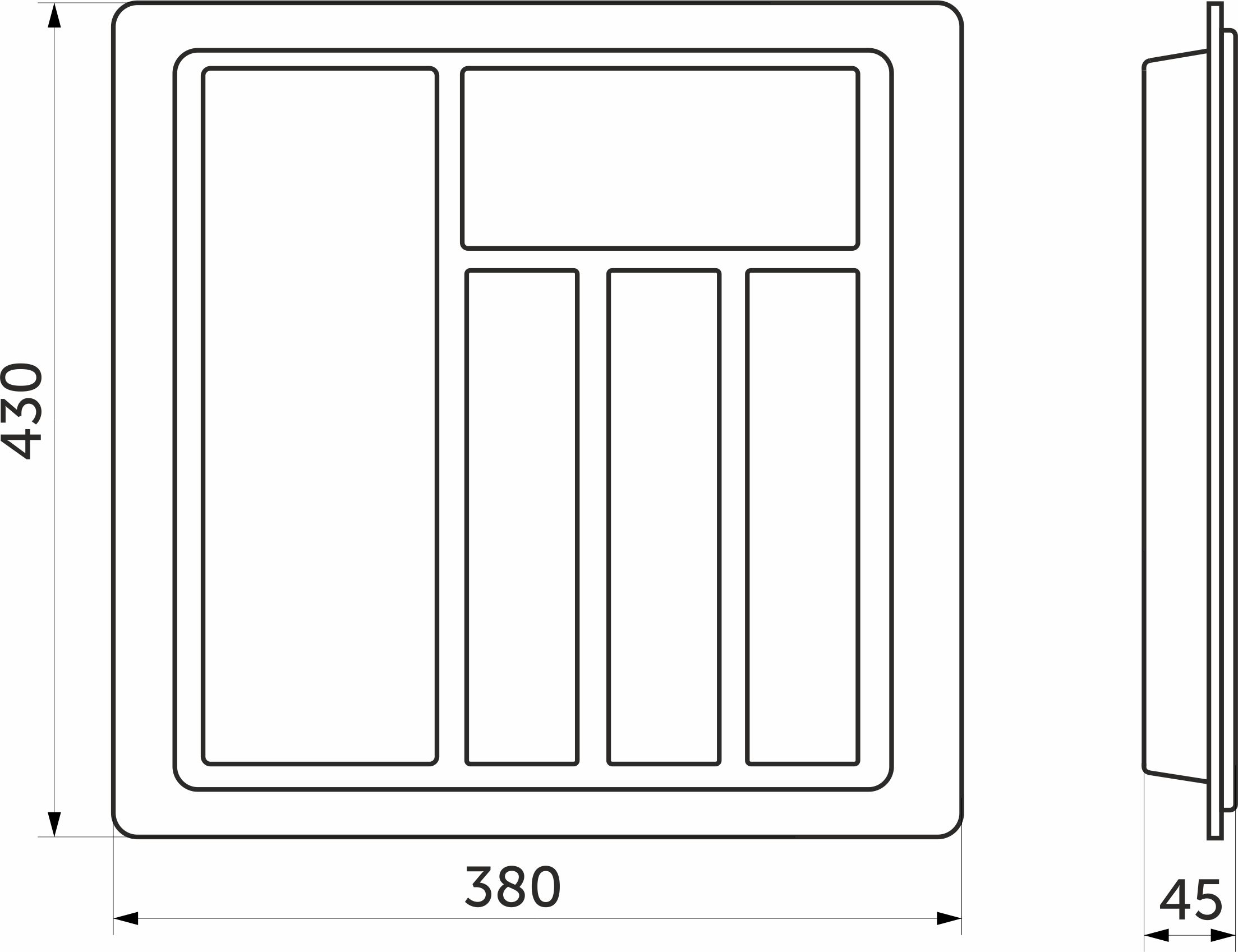 Вкладыш STANDARТ 45/430 используется для размещения кухонных принадлежностей. Многофункциональный и вместительный, выполнен из пищевого пластика. Шуфлядный вкладыш устойчив к влаге и не деформируется при длительном использовании. Цвет металлик.