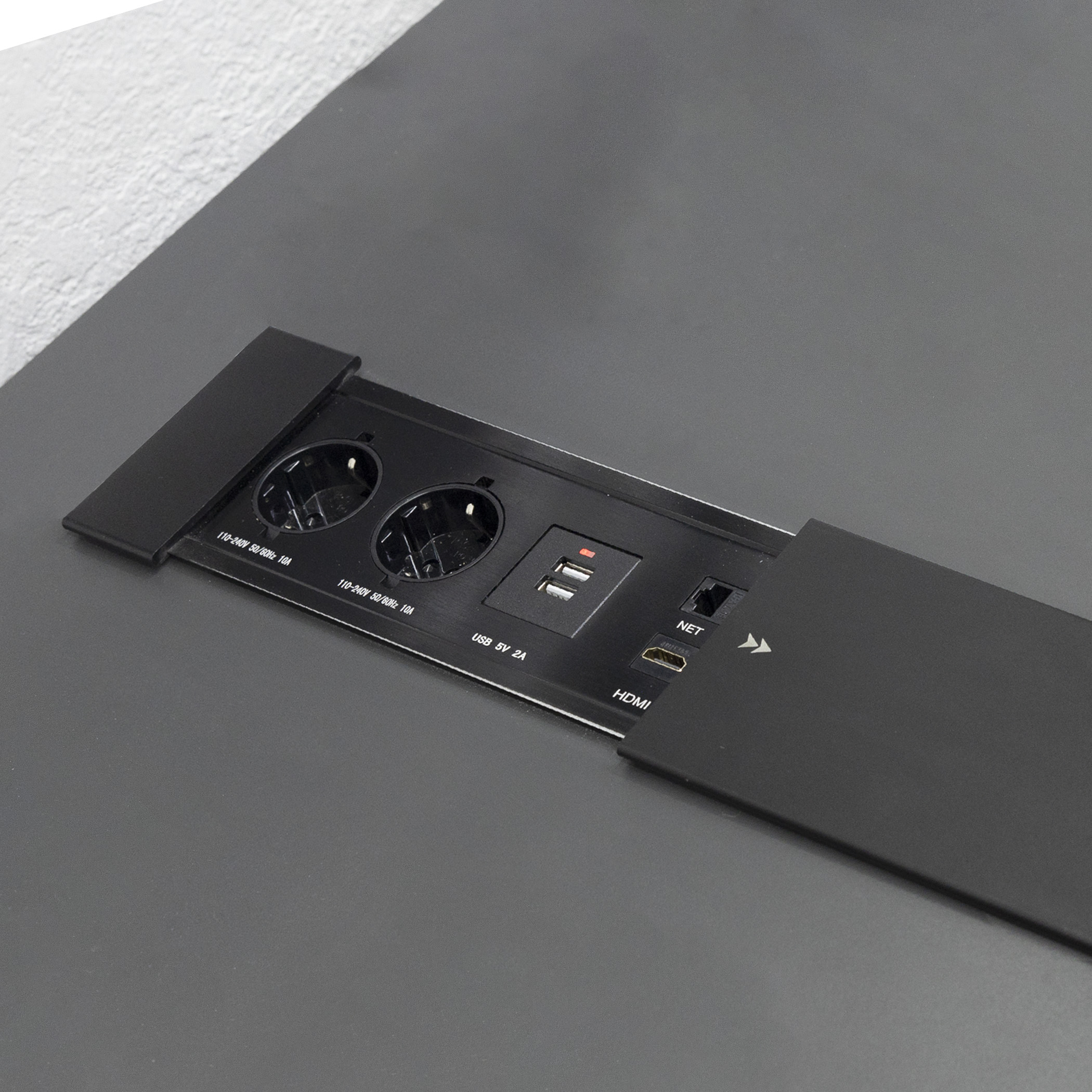 Наружный размер 280х190мм, монтажный размер 268х70х24мм, степень защиты IP20, длина кабеля 1,8м, электробезопасность 16A с заземлением и проводами с поперечным сечением 1,5 mm². Тип гнезда: Schuko, USB 2 x 5V DC 2,1A, HDMI, LAN, цвет алюминий. Встраивается в кухонную, офисную мебель и мебель для дома.