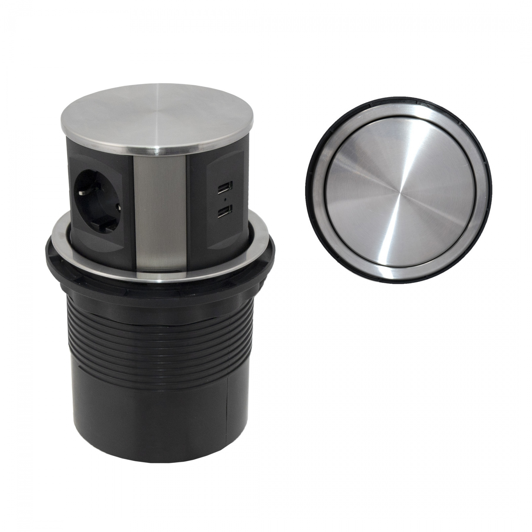 120 мм, 3 розетки + 2 USB. Тип розеток Schuko, входн. напряж. 220В, выходн. напряж. 220В, макс. сила тока 16А, USB выходн. напряж.5В, сила тока 2,4А, макс. мощность 12Вт, длина шнура 2 м. Push to Open. Встраивается в кухонную, офисную мебель и мебель для дома
