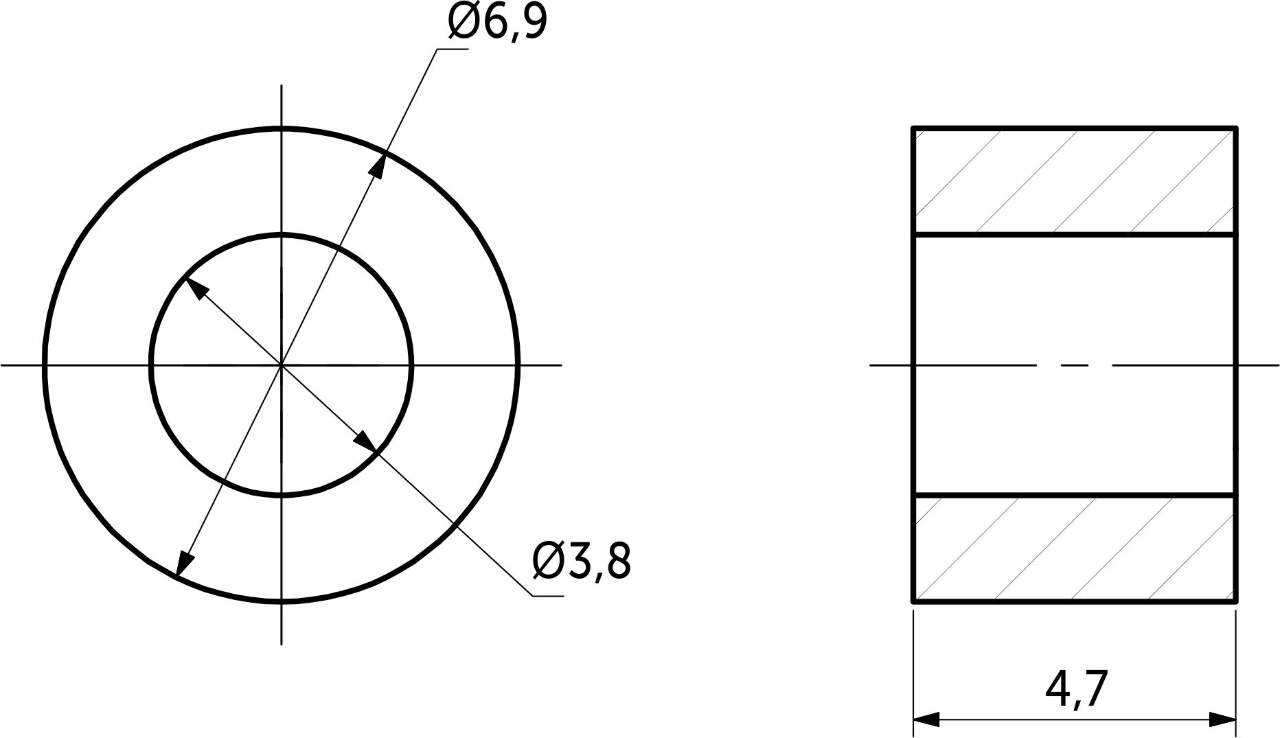Шайба-втулка без бортика применяется для крепления к стеклу различной фурнитуры при помощи винта, болта, шурупа. Вставляется в отверстие в стекле. Таким образом, металлический крепеж вкручивается не в стекло, а в пластиковую втулку, которая предохраняет хрупкий материал от сколов и трещин, дает возможность приложить большее усилие и лучше затянуть крепеж, предотвращает самоотвинчивание крепежного изделия. Наружный диаметр 6,9мм, внутренний 4мм, толщина 4,7мм. Чаще всего ее используют в мебельном производстве для крепления к стеклу или зеркалу ручек, петель. Толщина стекла от 5мм.