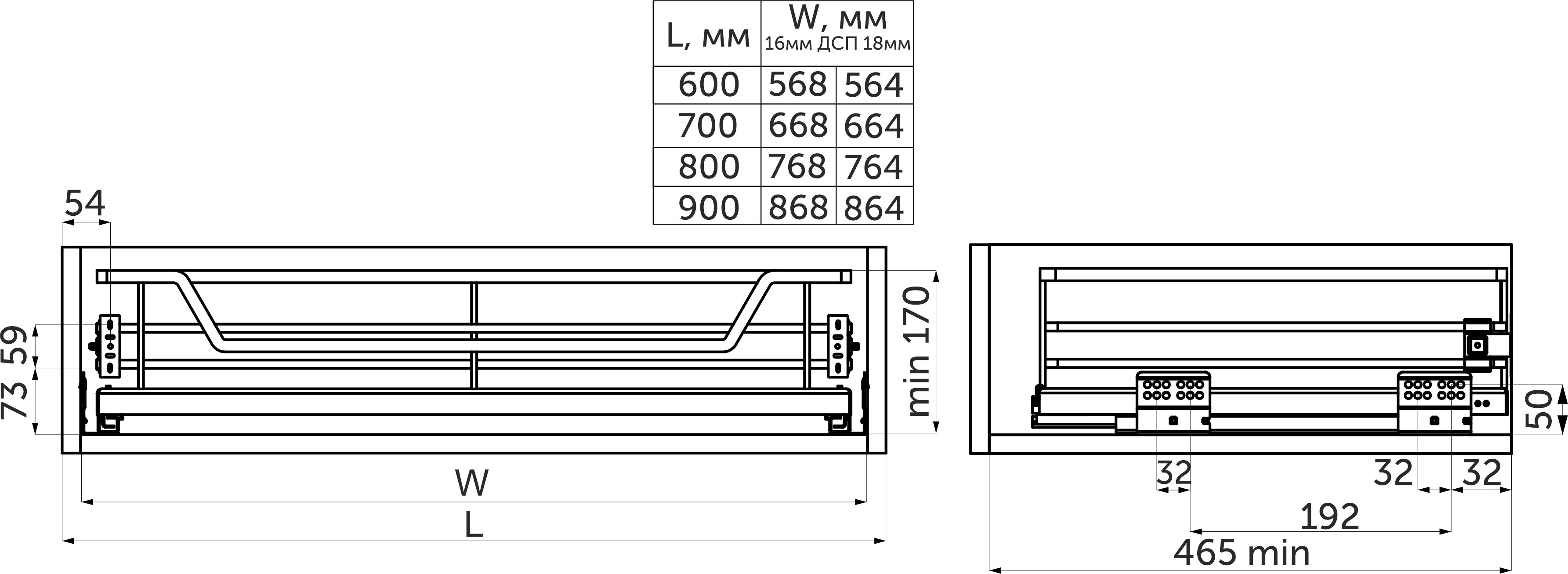 Выдвижная корзина-карго 150 крепл.боковое/универс. б/н, белый WIEXPOL
