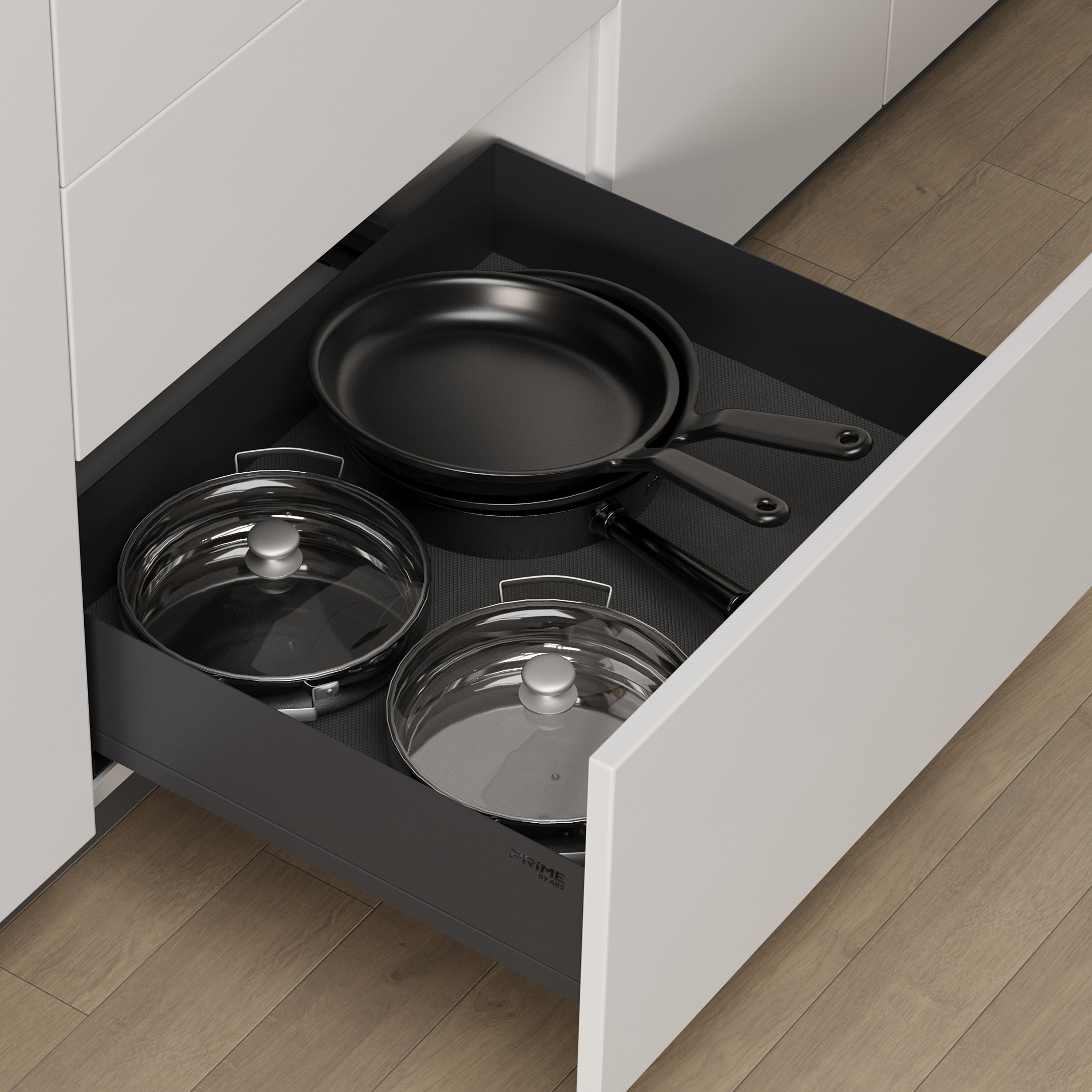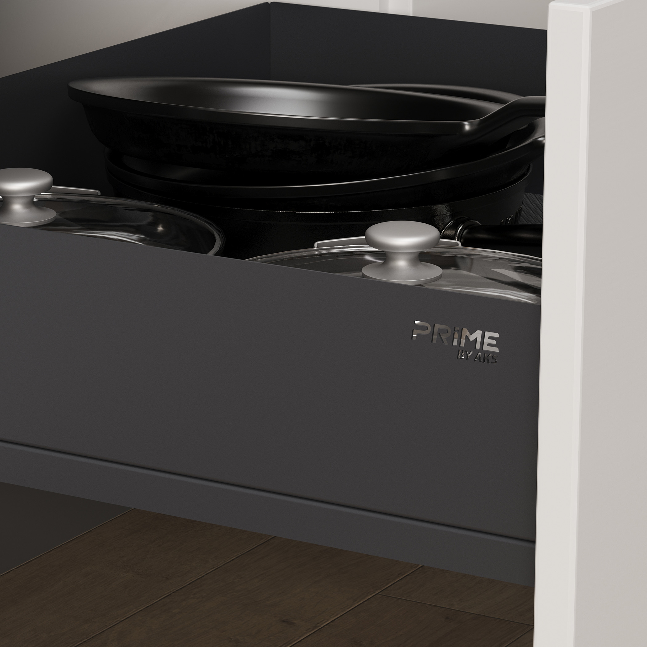 - направляющие скрытого монтажа с доводчиком PRIME by AKS полного выдвижения (60000 циклов, 25кг),