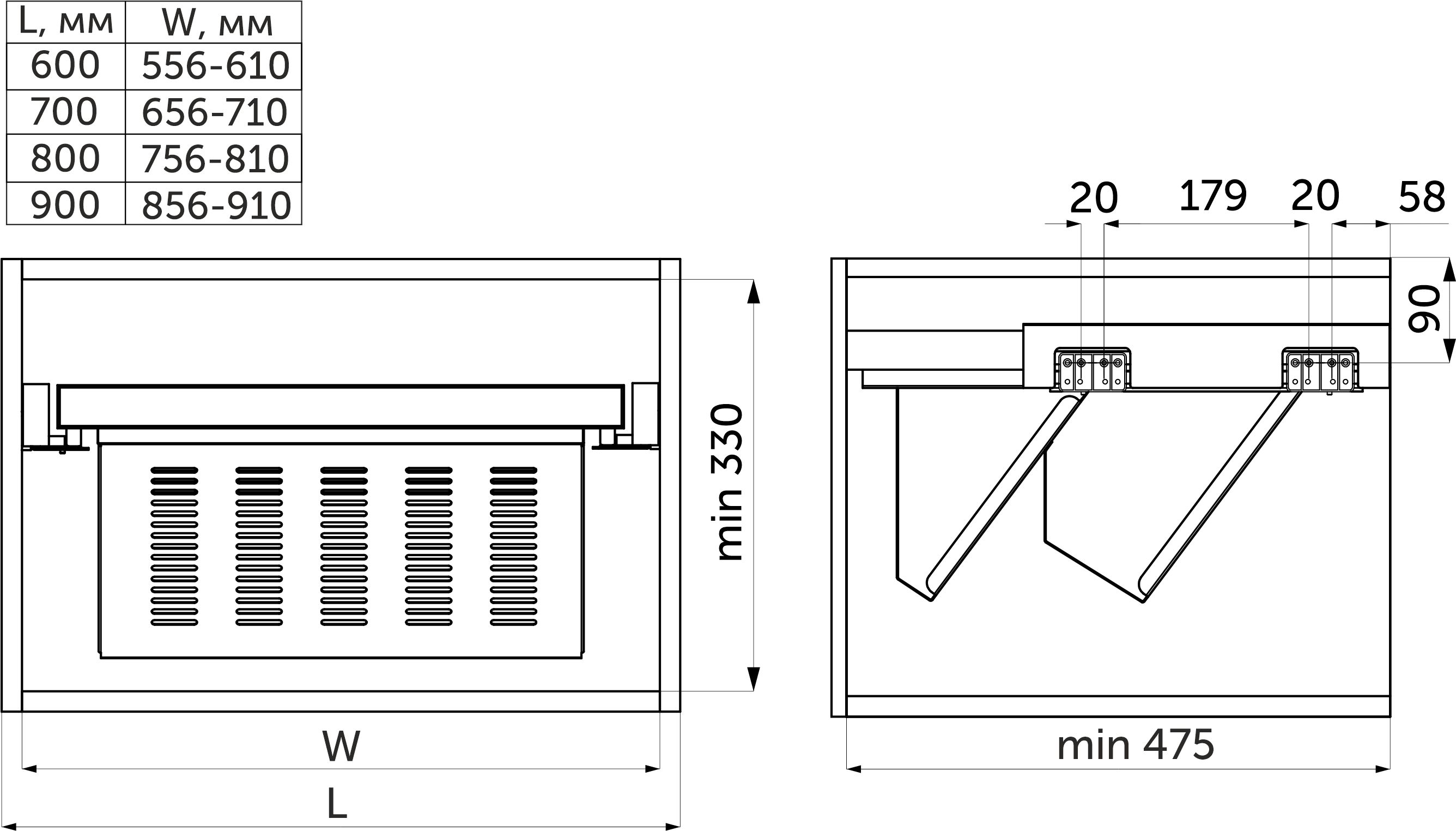 Выдвижная корзина для белья 600 (555*485*200) б/н, графит WIEXPOL