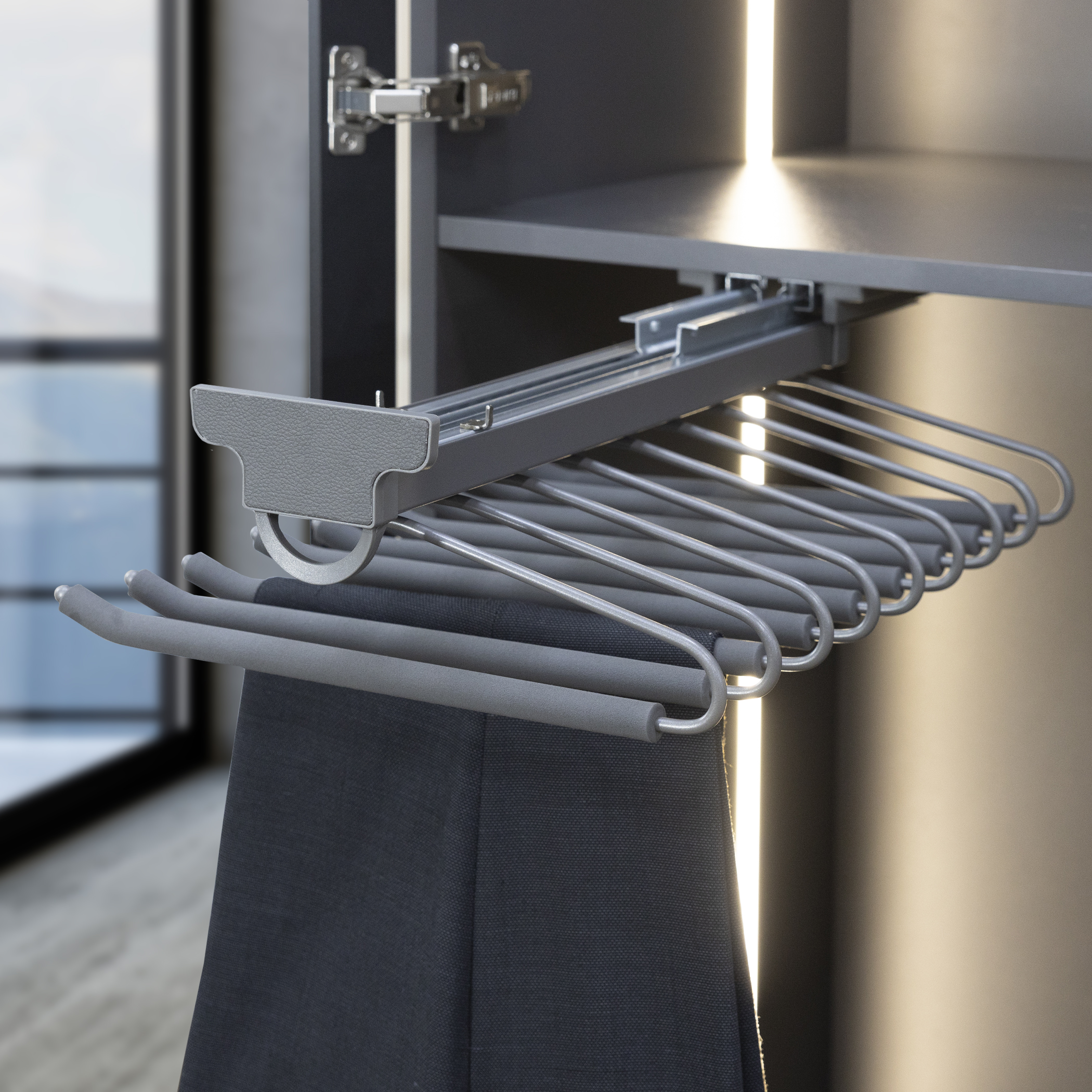 Выдвижная вешалка для брюк BRUNO крепл.верх./правое 340*470*130, графит PRIME by AKS