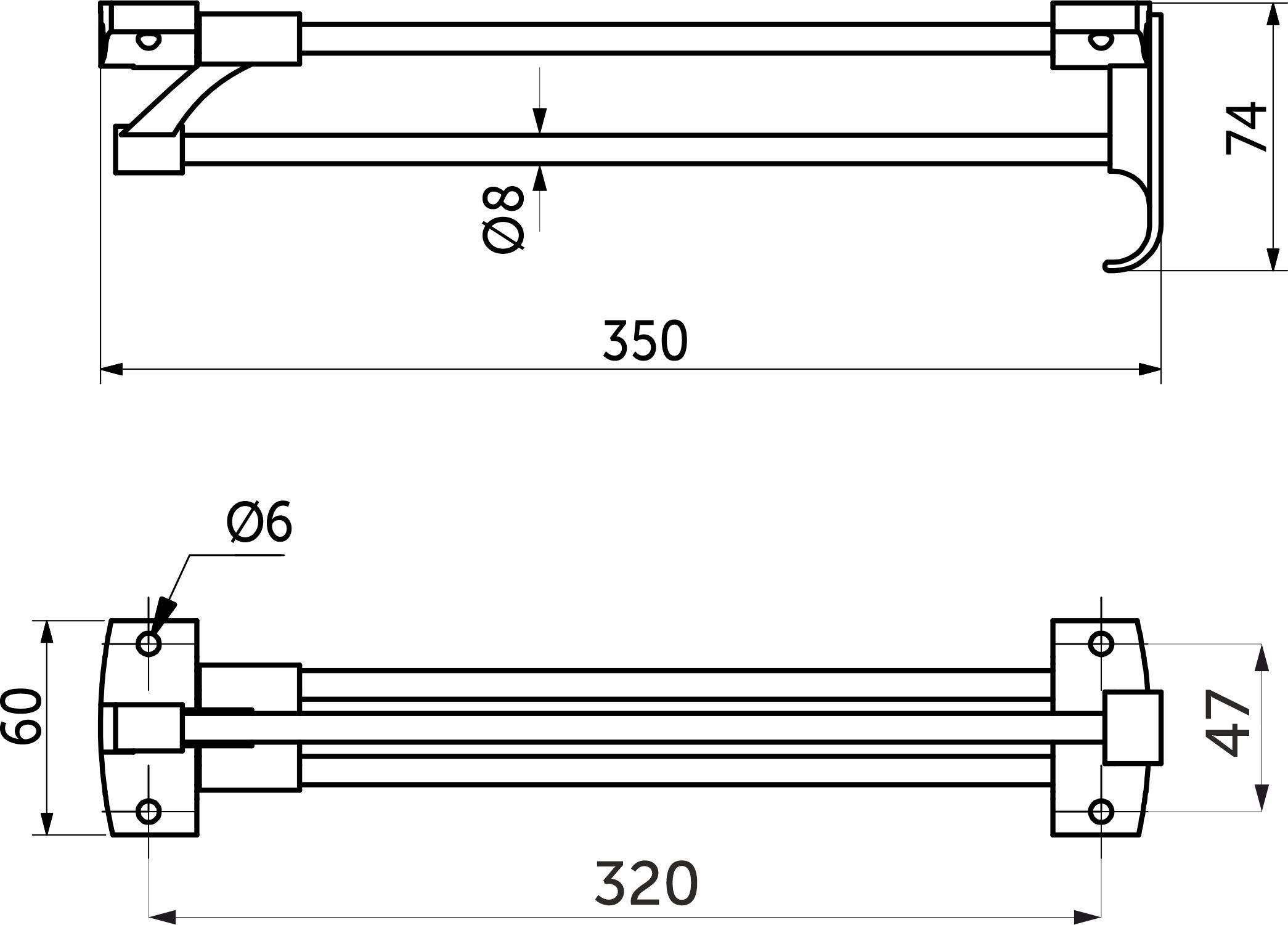 Вешалка изготовлена из цельнометаллического прута d8мм. Крепиться на горизонтальные поверхности. Используется для размещения вешалок-плечиков с одеждой.