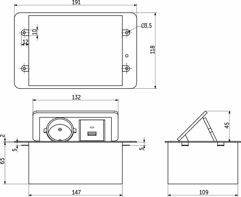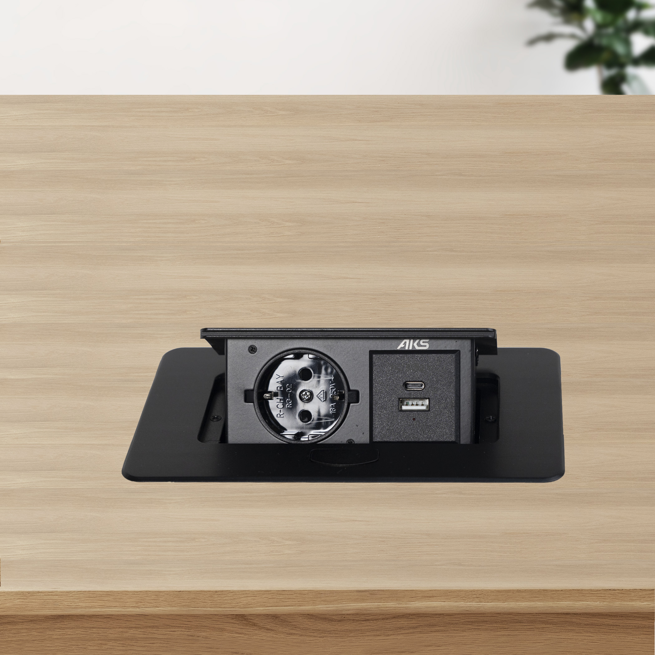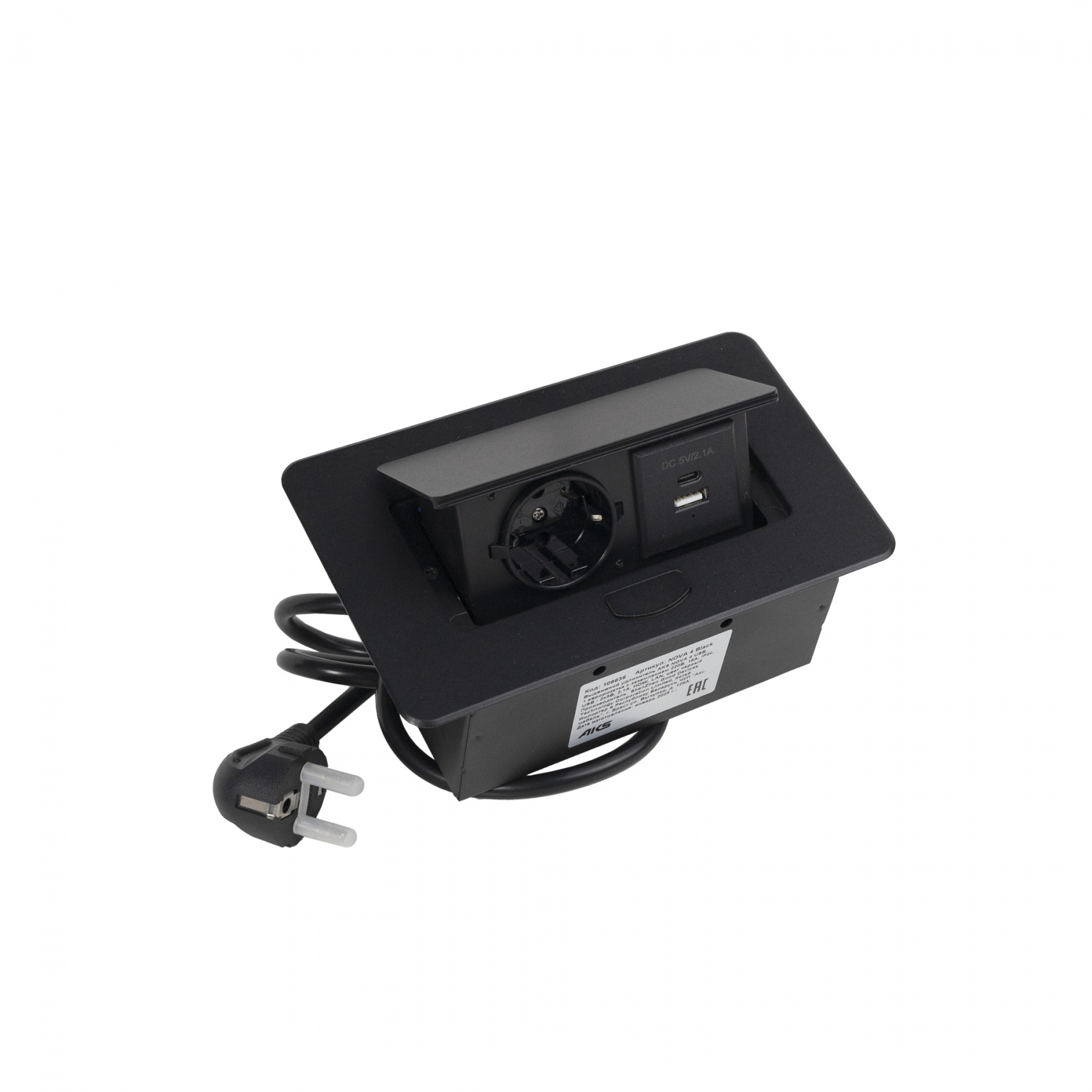 Мебельный удлинитель AKS NOVA 4. Евророзетка 220В/16А, максимальная мощность 3,5кВт, USB A + USB C, для зарядки гаджетов, степень защиты IP20.