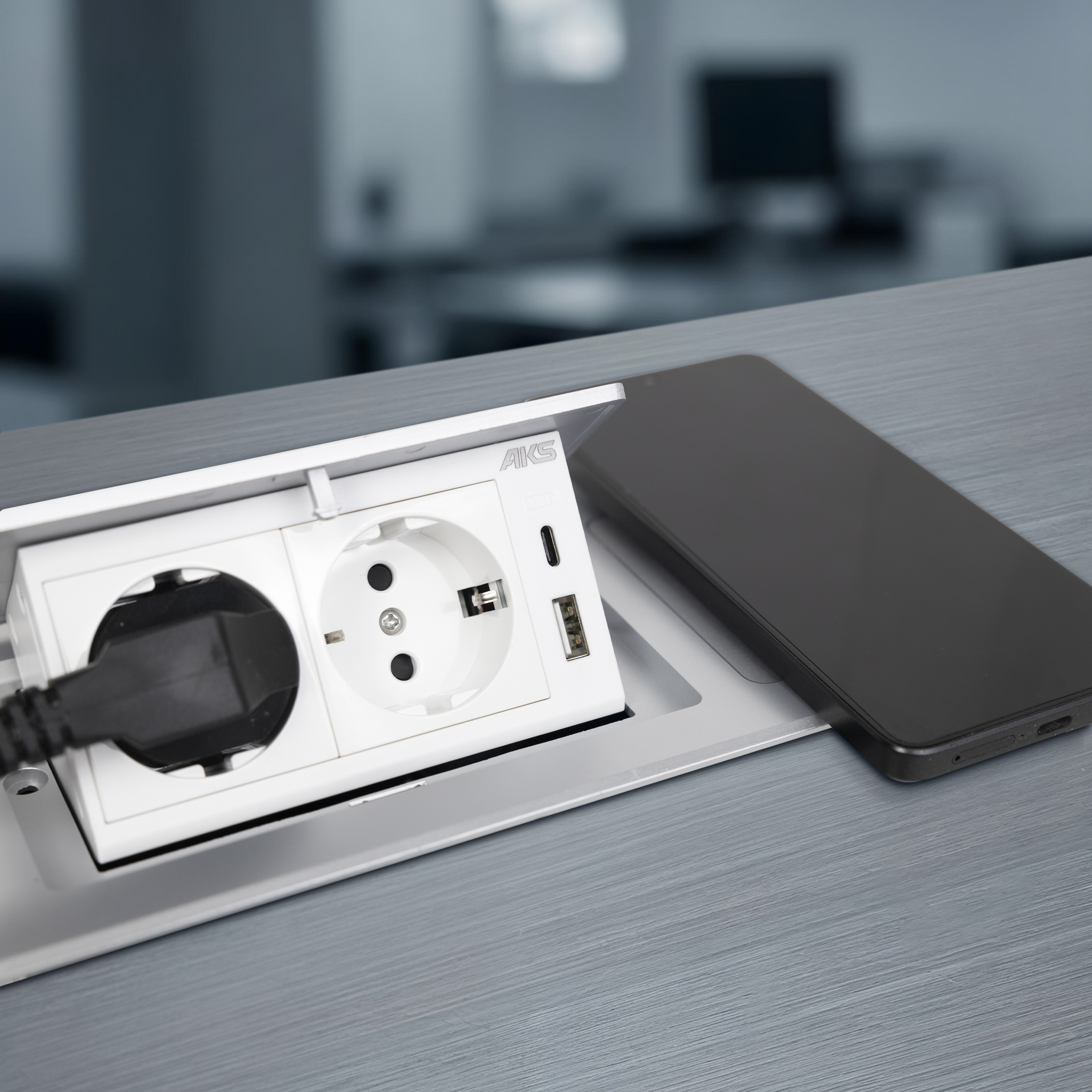 Выдвижной удлинитель Vulcan USB, 60 мм, 3 розетки, USB A + USB C, крышка пластик, алюминий, AKS