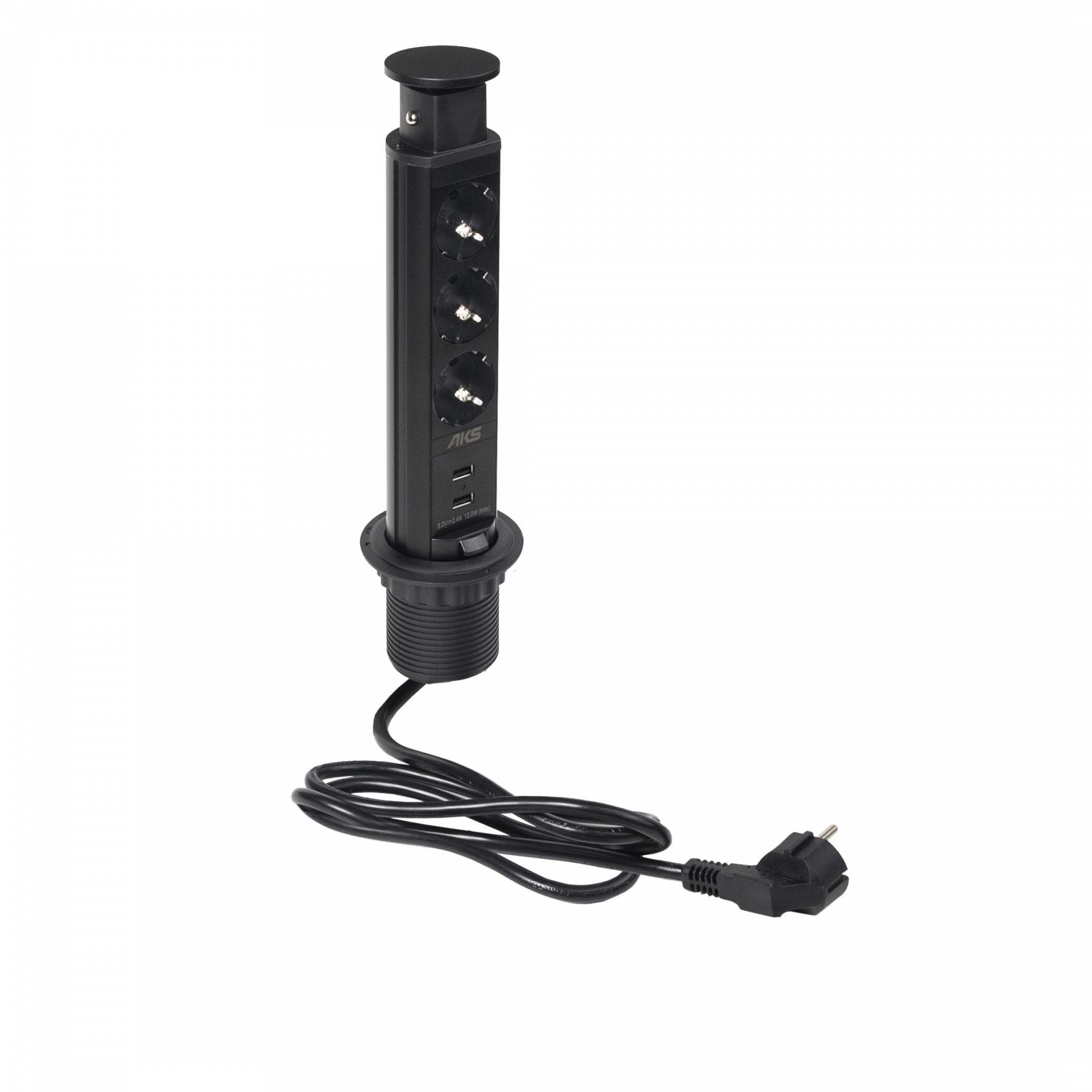 Выдвижной удлинитель Nova USB, 2 розетки, USB A + USB C, черный, AKS