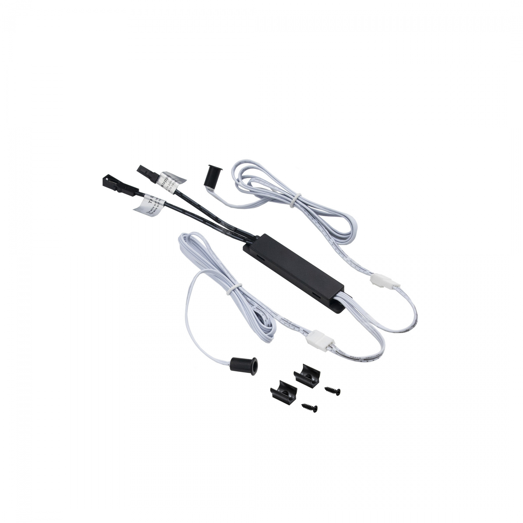 Датчик движения двойной с креплением, срабатывает на преграду для шкафов, по датчику на дверцу/ Дистанция срабатывания до 50 мм, рабочее напряжение 12-24VDC, мощность 60W, степень защиты IP20. Способ установки врезной или накладной, размер установочного отверстия 8мм, глубина 13 мм, длина провода до блока управления 1 м, длина проводов от блока управления до источника света и блока питания по 100 мм.