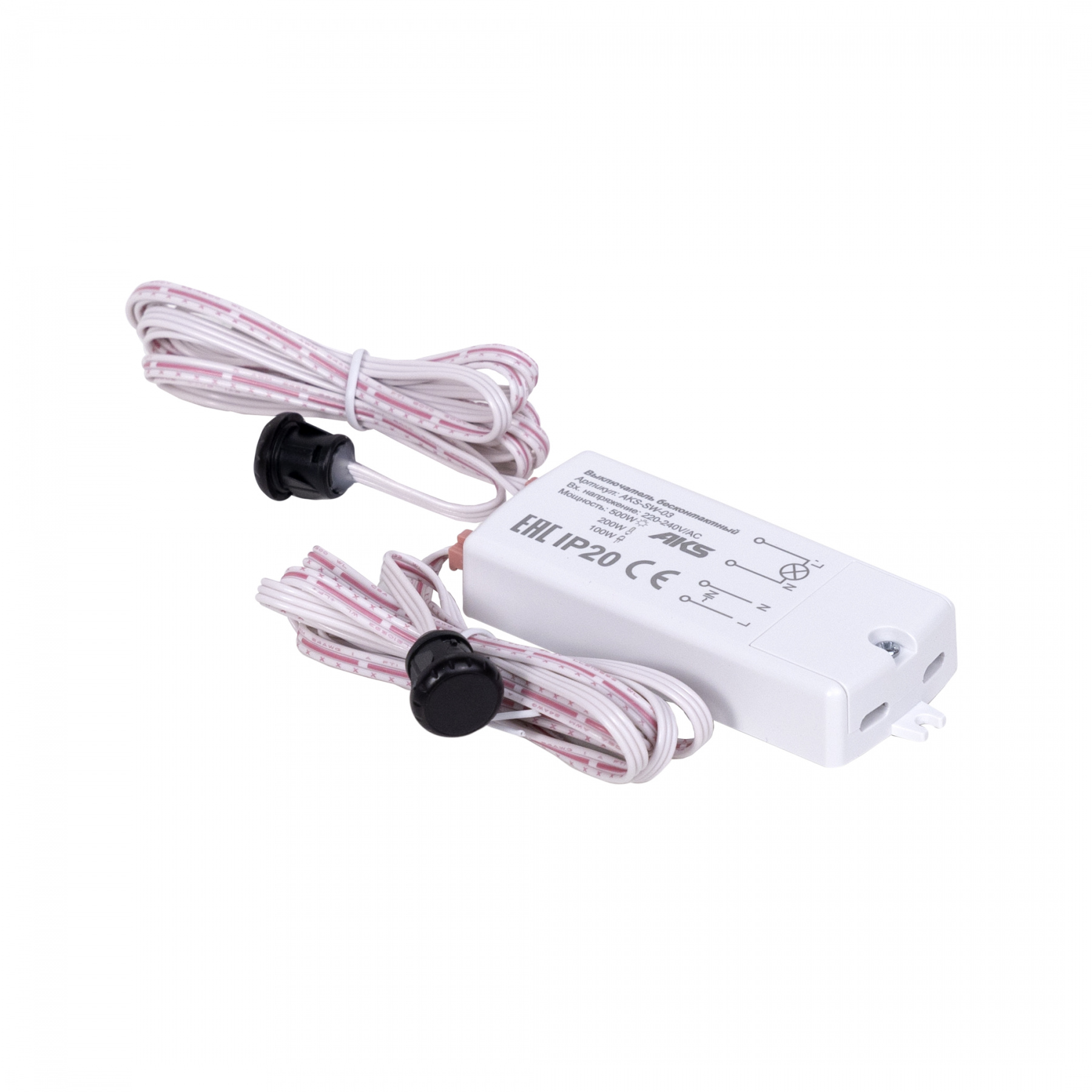 Выключатель бесконтактный на преграду, двойной, накладной, плоский, 12/24V, 60W/100W, белый, AKS