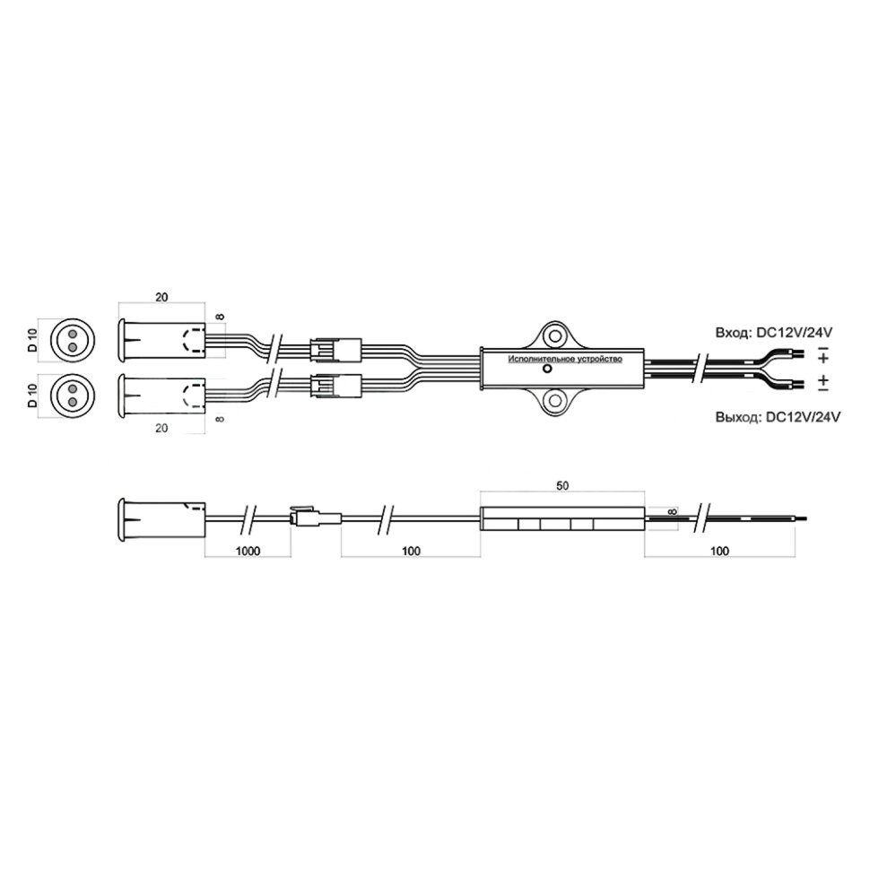 Выключатель бесконтактный, универсальный, (на взмах/на преграду), двойной, накладной/врезной, 12/24V, 60W/100W, D8мм, черный, GLS