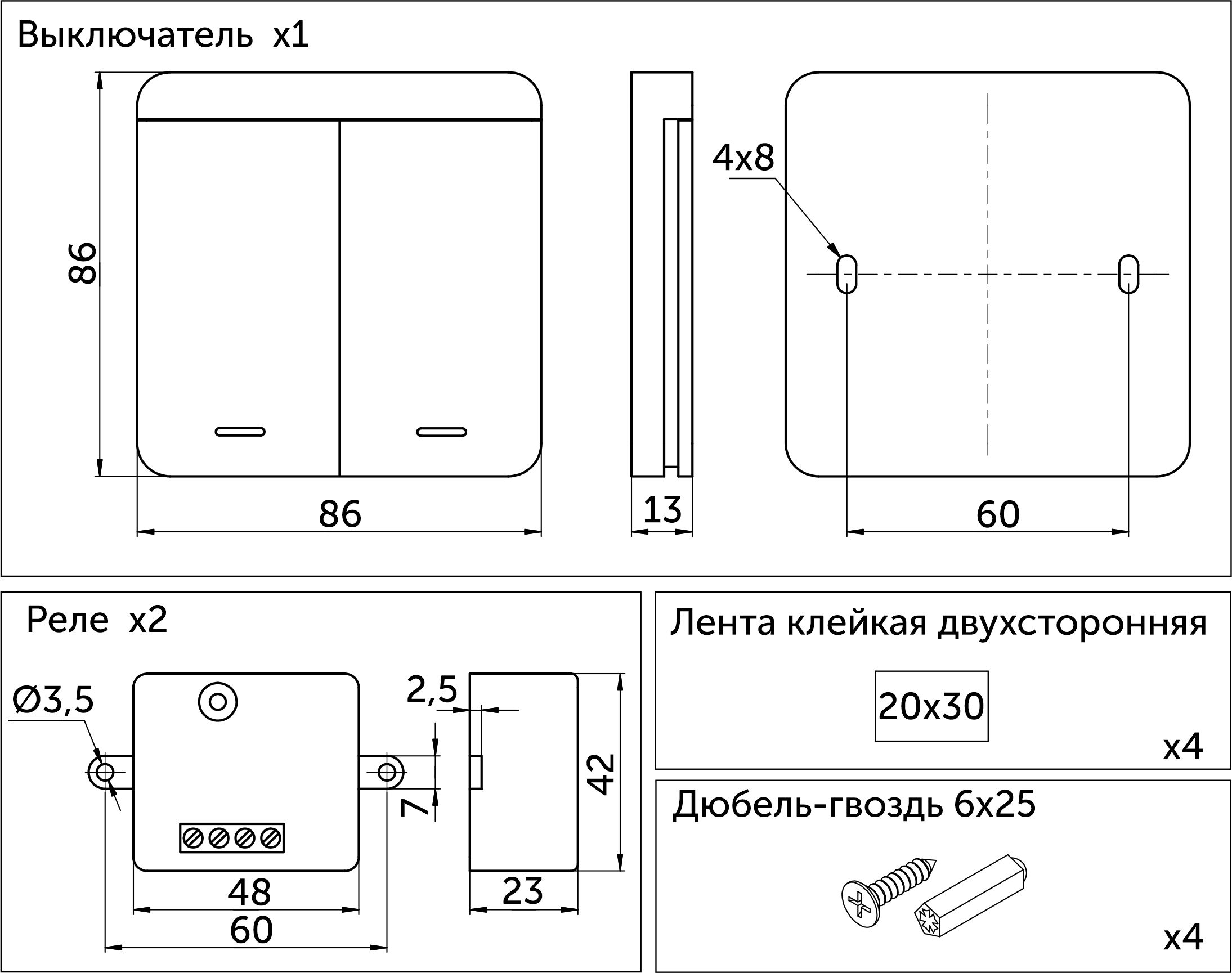 Выключатель беспроводной, с реле, 2 клавиши, графит, AKS