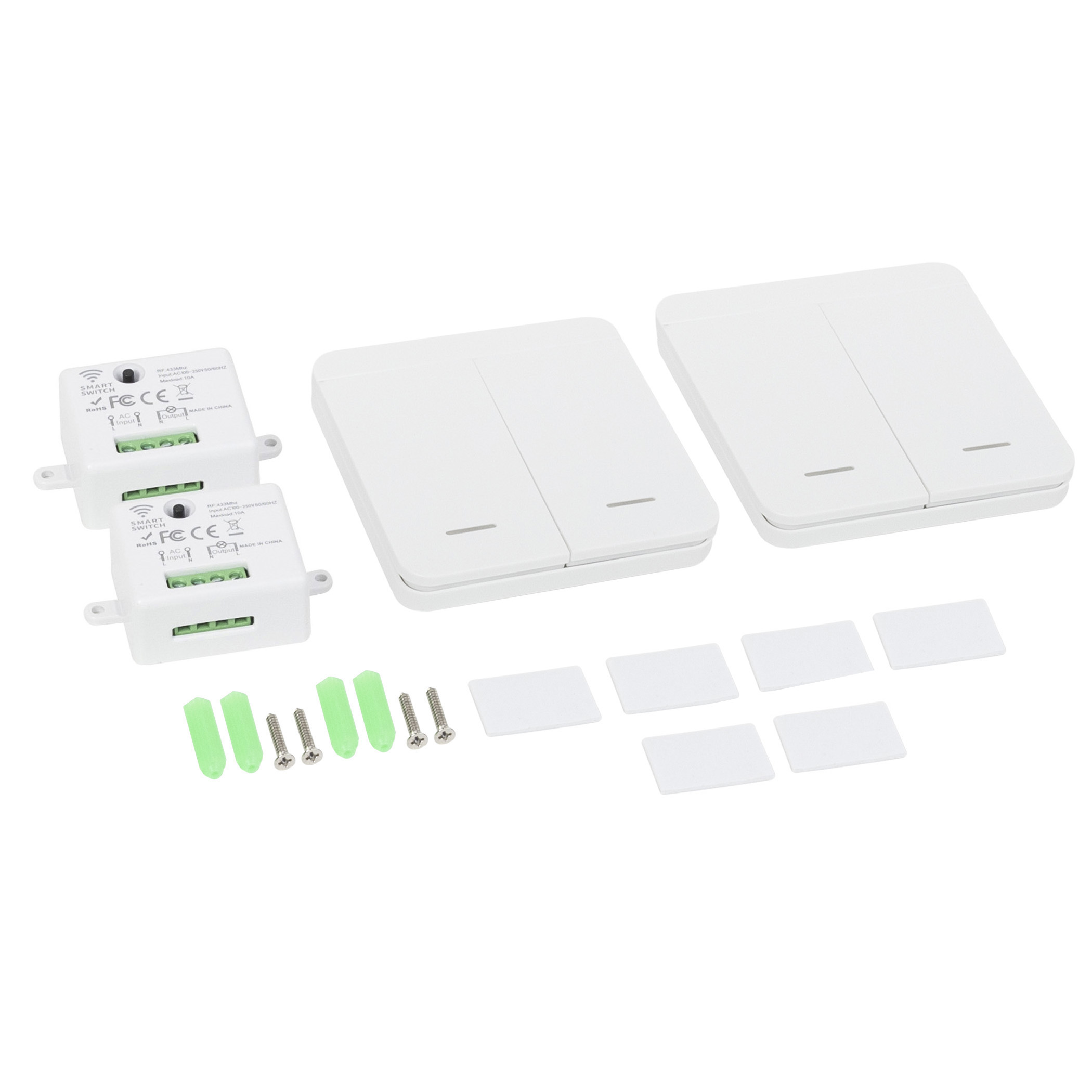 Выключатель беспроводной, с реле, проходной, 2 клавиши, белый, AKS