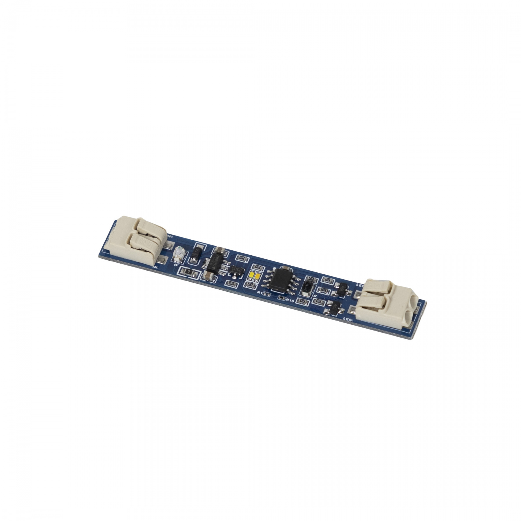 Сенсорный переключатель с диммированием, с коннекторами, устанавливается в профиль для светодиодной ленты, срабатывает на взмах руки на расстоянии до 100 мм, задерживание руки возле датчика регулируется яркость освещения, входное напряжение 12В/24В, максимальная мощность 60Вт/120Вт, степень защиты IP20.