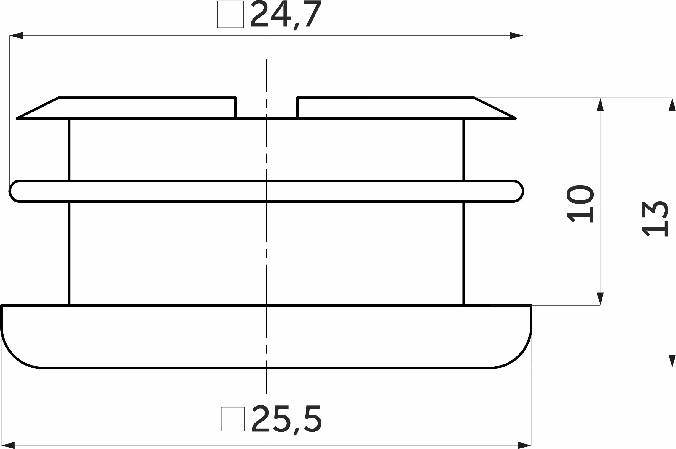 Заглушка предназначена для квадратной трубы 25*25, закрывает торец трубы и препятствует попаданию внутрь трубы влаги и пыли.