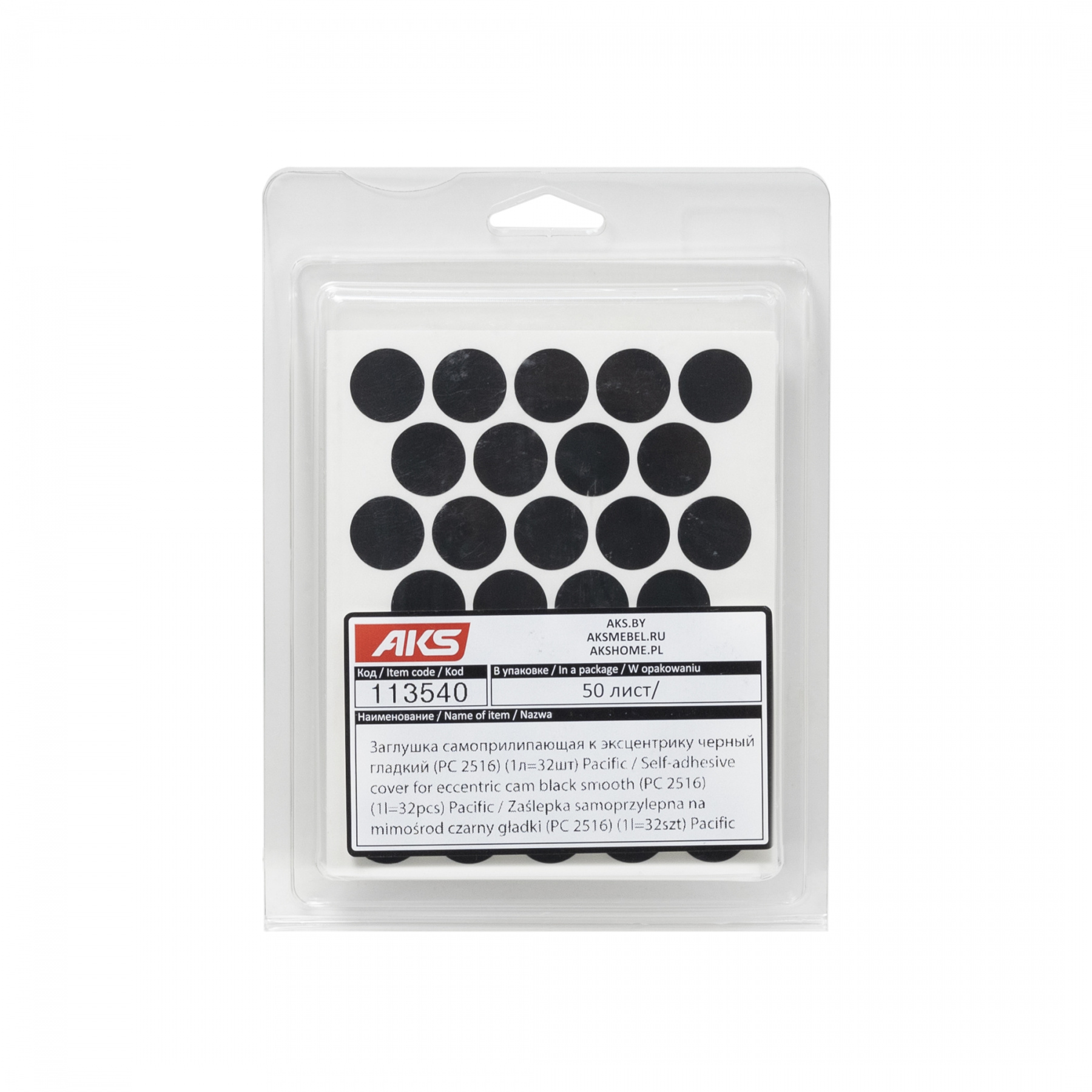 Заглушка самоприлипающая к эксцентрику черный гладкий (PC 2516) (1л=32шт) Pacific