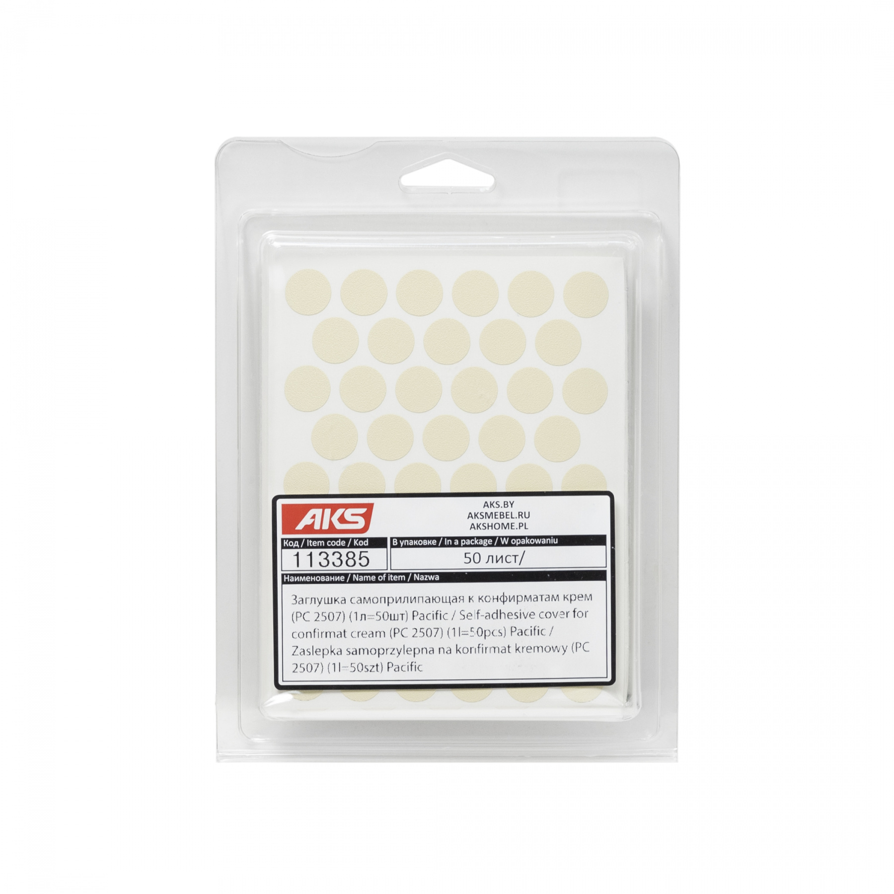Заглушка самоприлипающая к эксцентрику белый шагрень (20322) AKS (лист-28шт.)