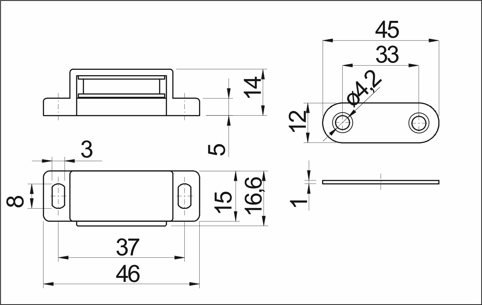 Защелка магнитная мебельная малая AKS чёрная (присадка планки-33мм)